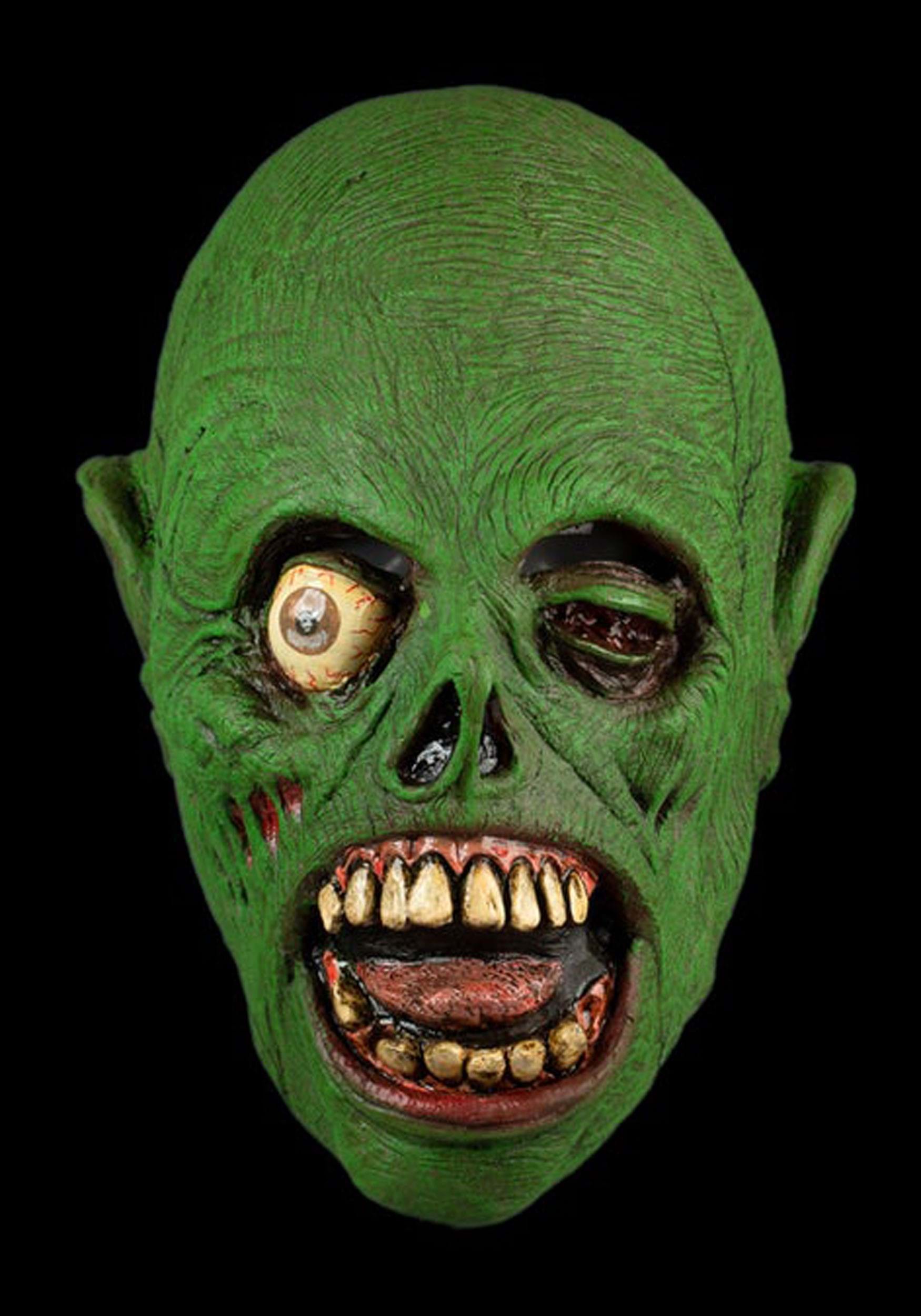 Pop out of your underground cavern to scare the pants off of passers-by in this Green Monster Full Face Adult Mask! The molded mask conceals your human features and gives you the appearance of a terrifying creature with one bulging yellow eye, a skull-like nose, and a gaping mouth filled with rotting teeth. Tendons stretch over what looks like raw flesh. Charming!