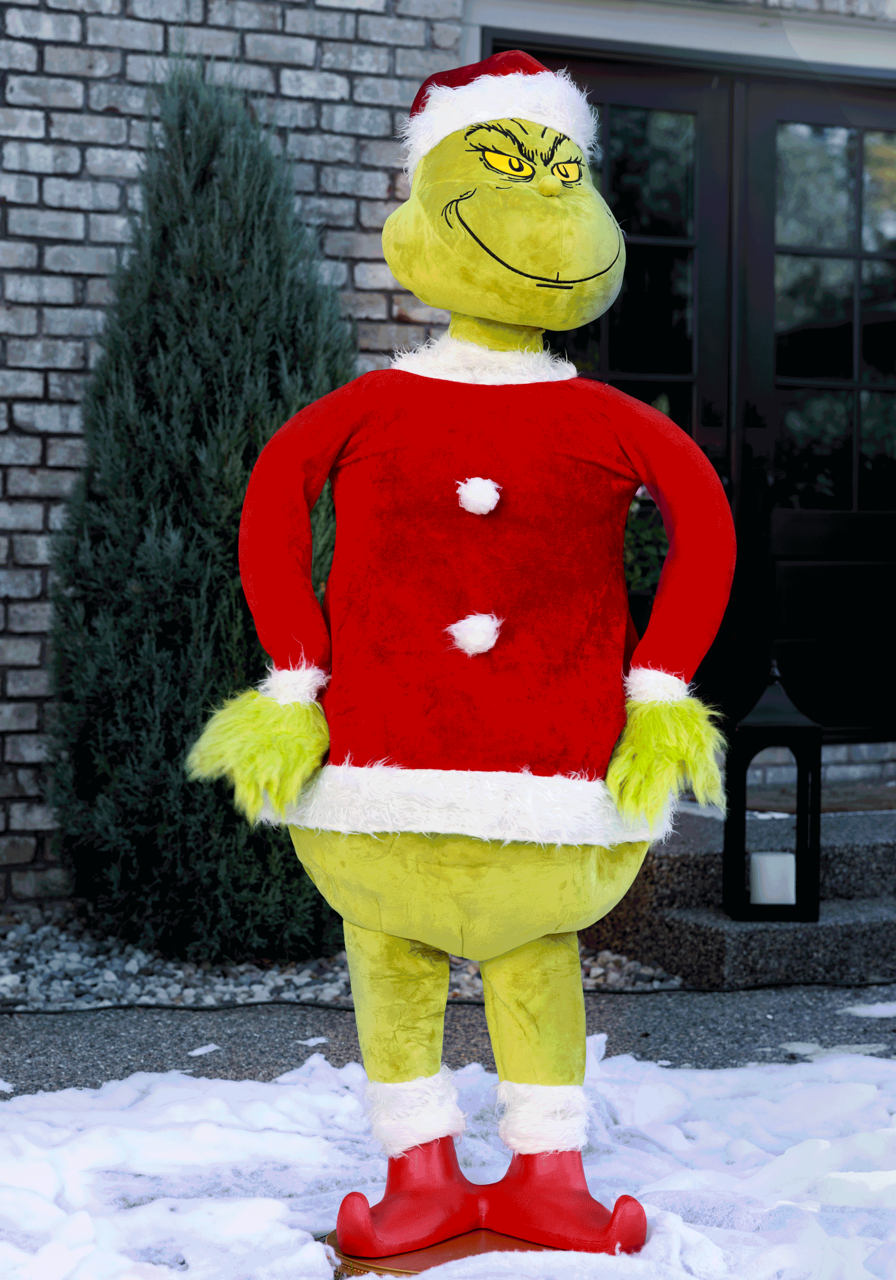 Setting it up is a breeze with all the included parts: base with boots, head, torso, Grinch suit, poles, and connectors—it's like putting together a slightly evil Christmas puzzle. It stands a full 70 inches tall and 30 inches wide, making it impossible to miss. Just plug it into a standard US wall outlet, or if you're feeling bold and want to put it outside, make sure it's a GFCI outlet because, you know, safety first—even for Grinches.
