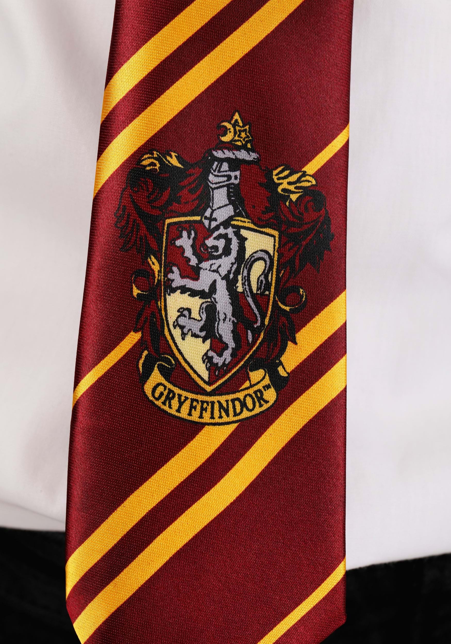 - Tie has printed stripes and Gryffindor crest