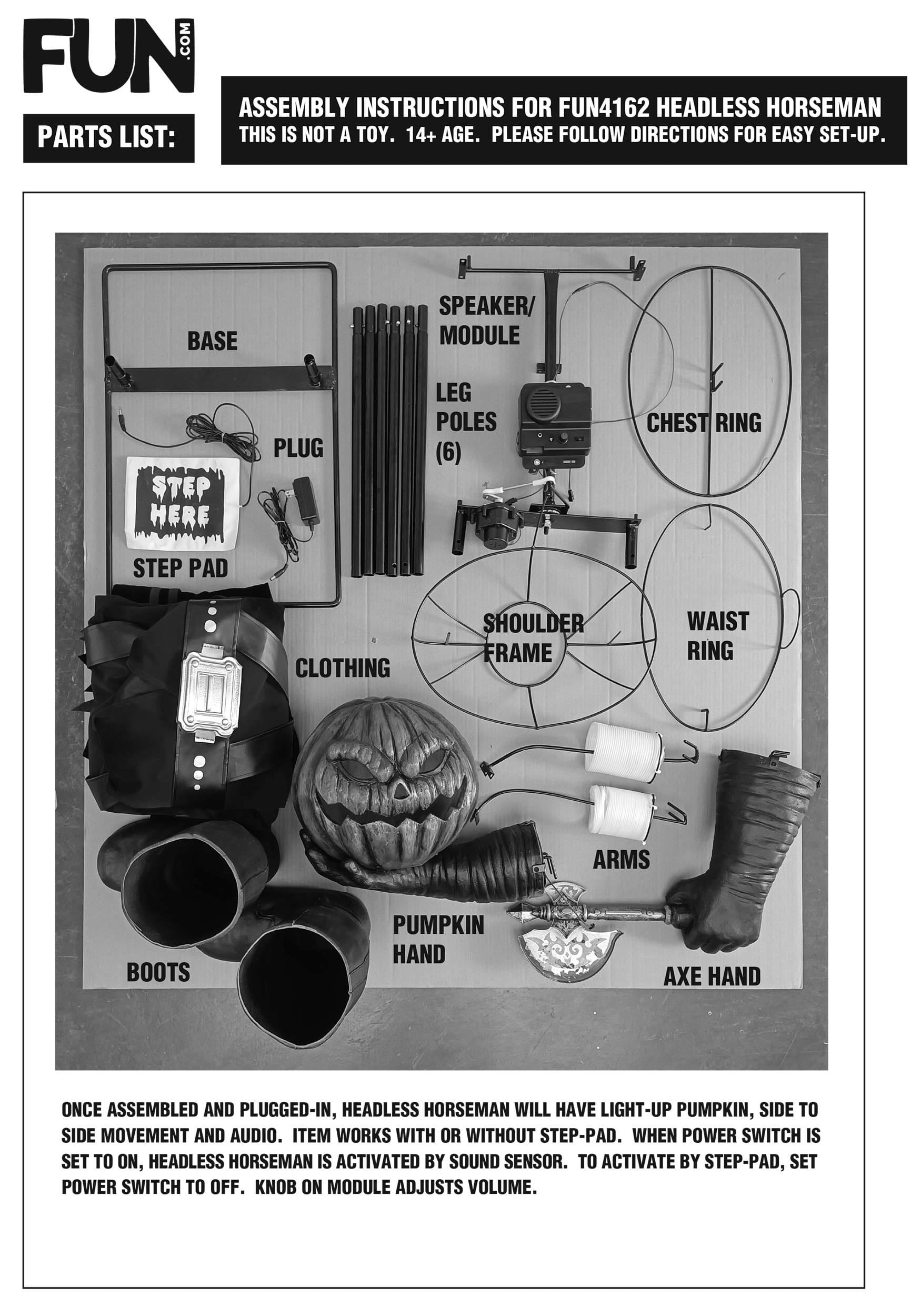 - When activated by sound sensor or step pad, figure makes eerie sounds, upper body sways, and pumpkin lights up
