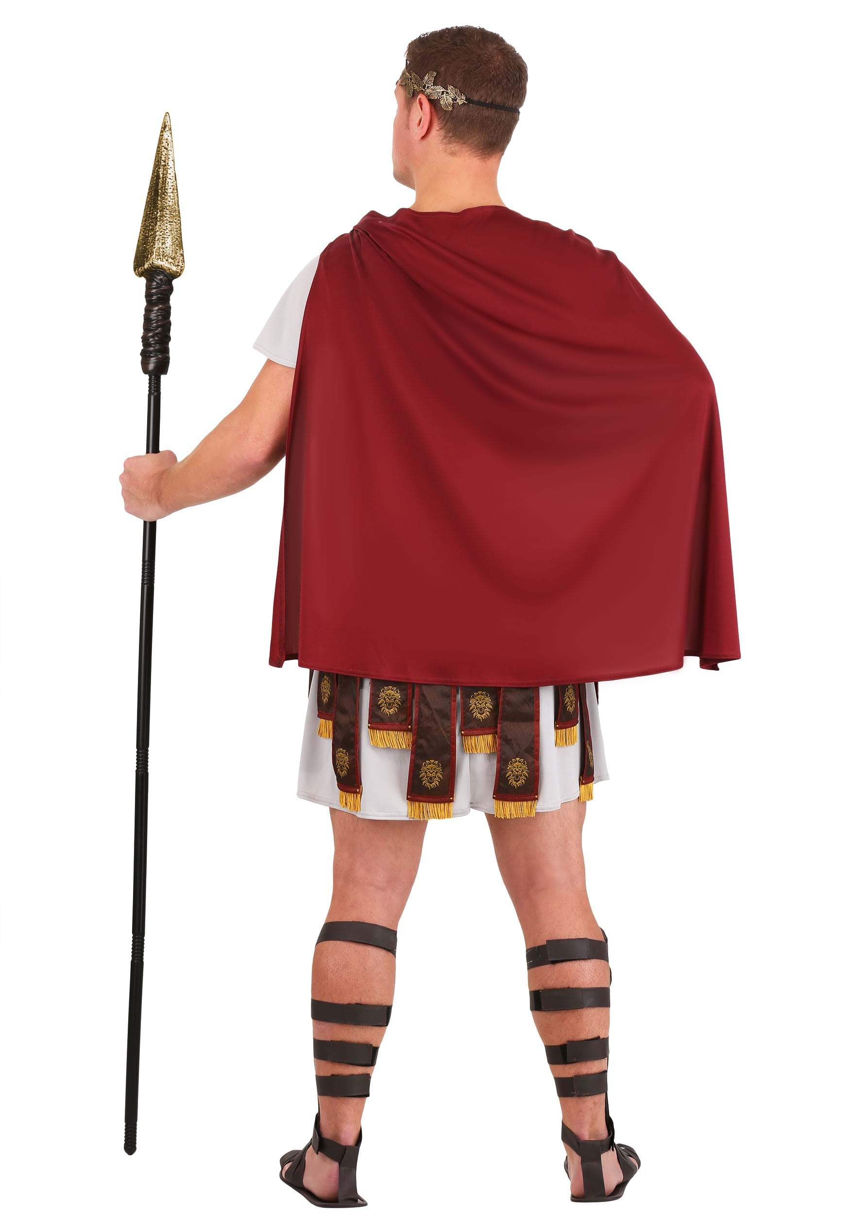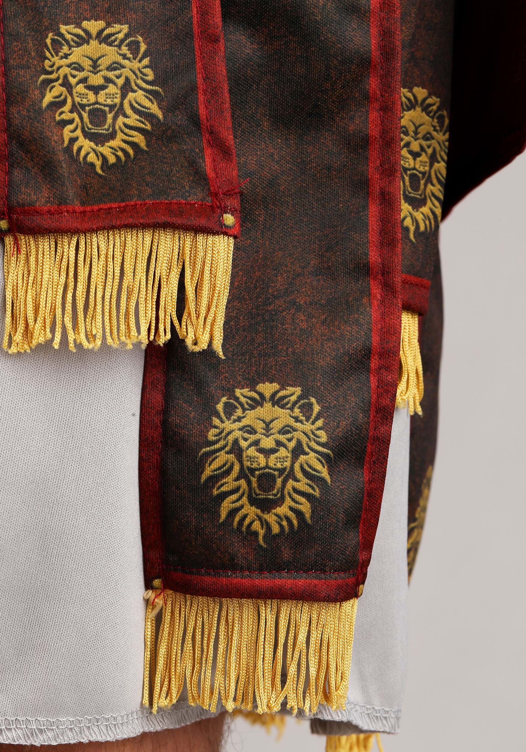 - Red jersey cape with an antique brass medallion drapes over your shoulders