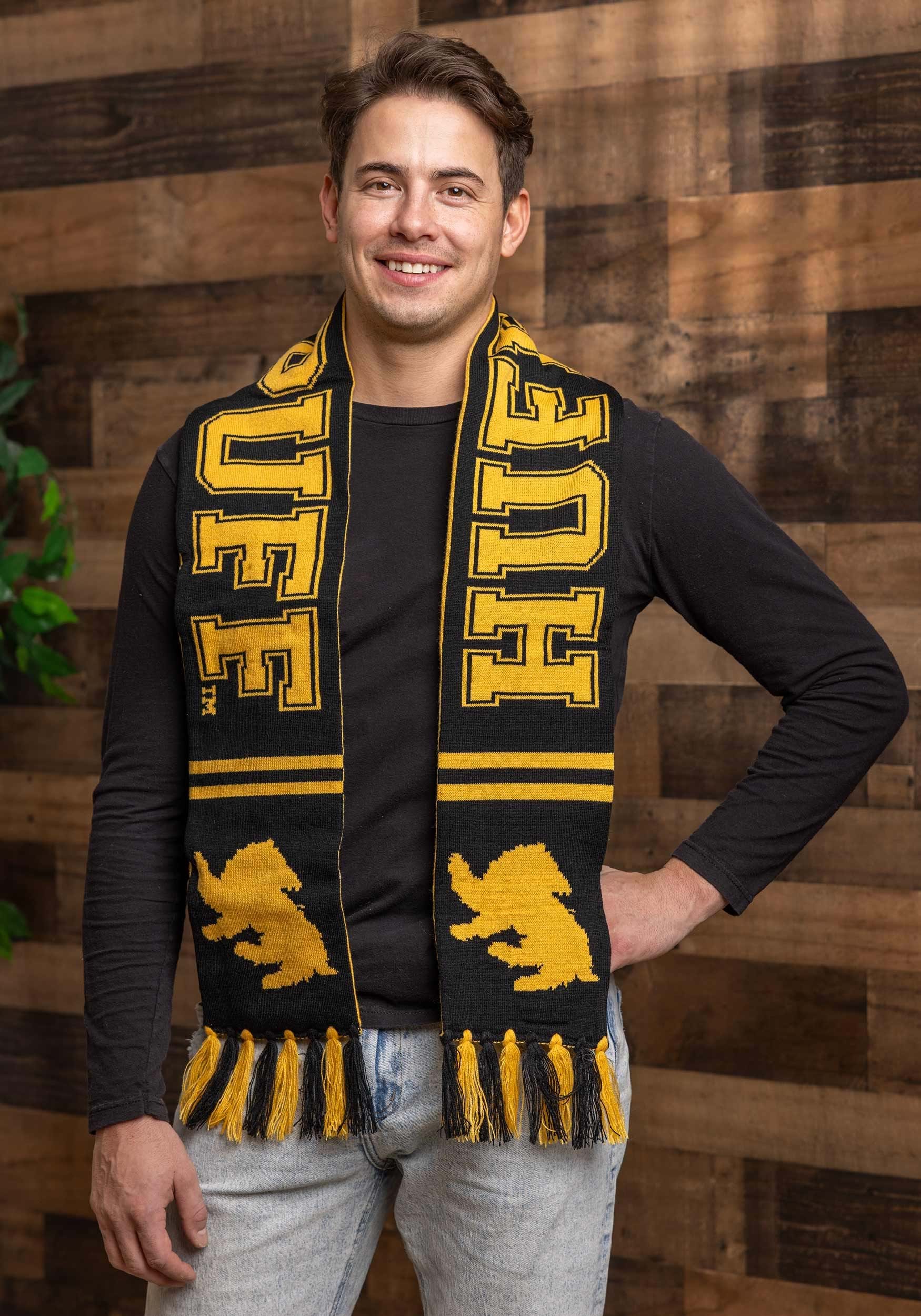 And you seem like a Hufflepuff. We aren't quite sure what it is. Maybe it's those kind eyes we can't stop staring at. Yeah, must be. And what would be the fun in being sorted into a Hogwarts House without properly repping it? To that end, we have something for you and all that ambition: this officially licensed Hufflepuff Reversible Knit Scarf. It's a warm, all-acrylic, reversible scarf that fits most, with that familiar badger on the ends. Just drape, twist, or tie all sixty-four inches of this scarf in whichever way you need to to get your prospective Yule Ball mate to notice. In this, we don't think it will be much of a challenge anyway. Who could ever turn down a bat of those kind eyes?