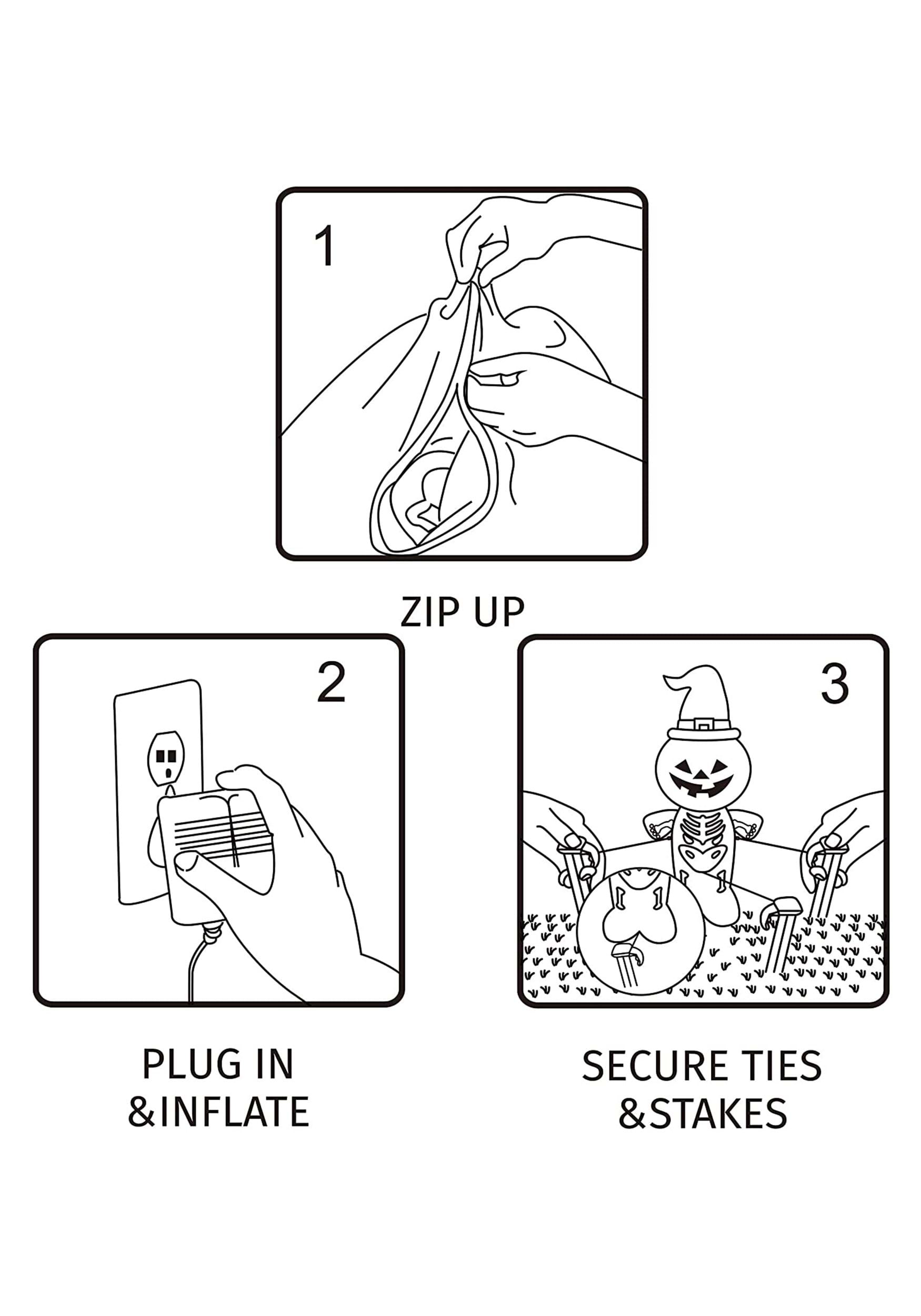 This piece inflates in seconds to produce the desired effect: a unique Halloween entry or lawn decoration. It's a skeleton of a T-rex that looks like it may be out trick or treating as a witch. It's carrying a pumpkin bucket and wearing a witch-like hat! There are internal LED lights for added effect.