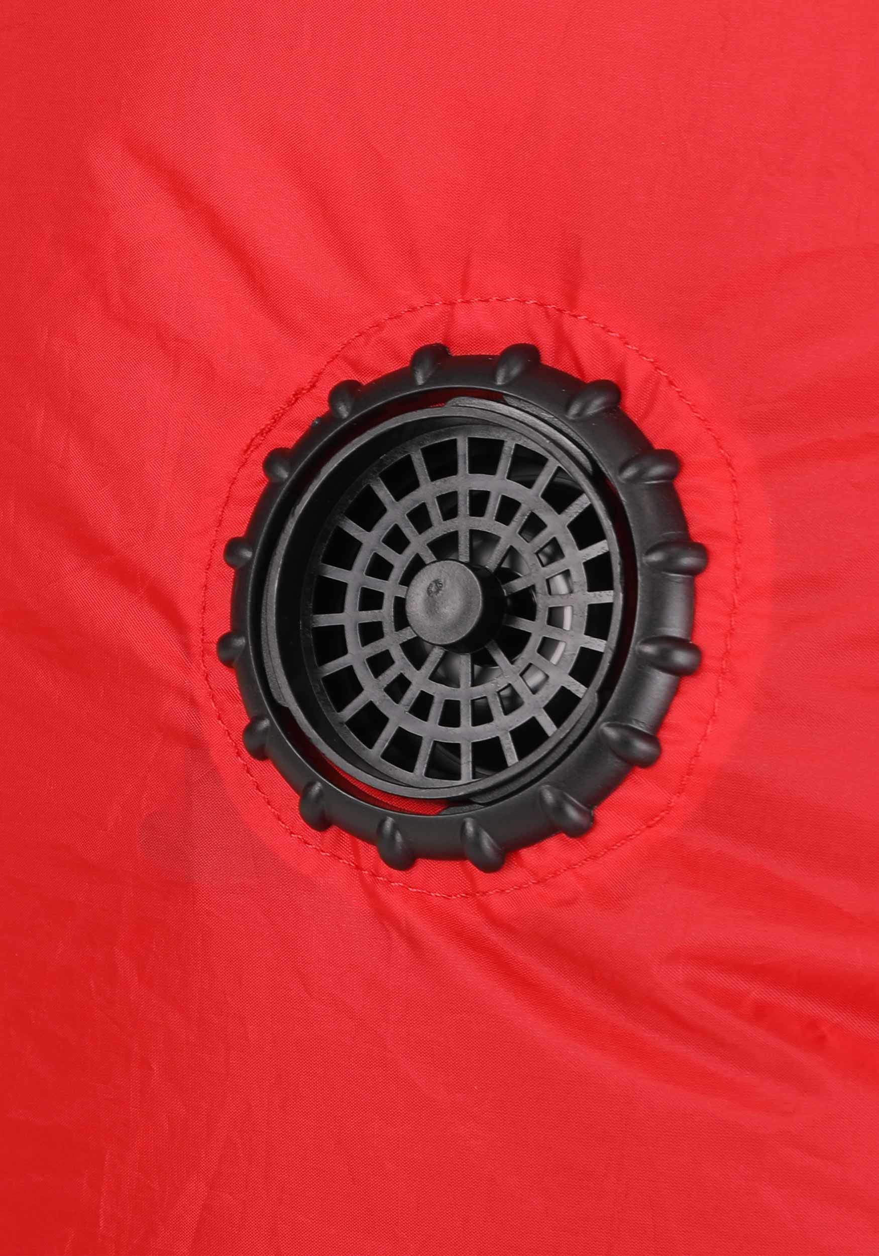 - Battery pack fits into inner pocket near fan; also has a clip to attach to clothing inside bodysuit if desired
