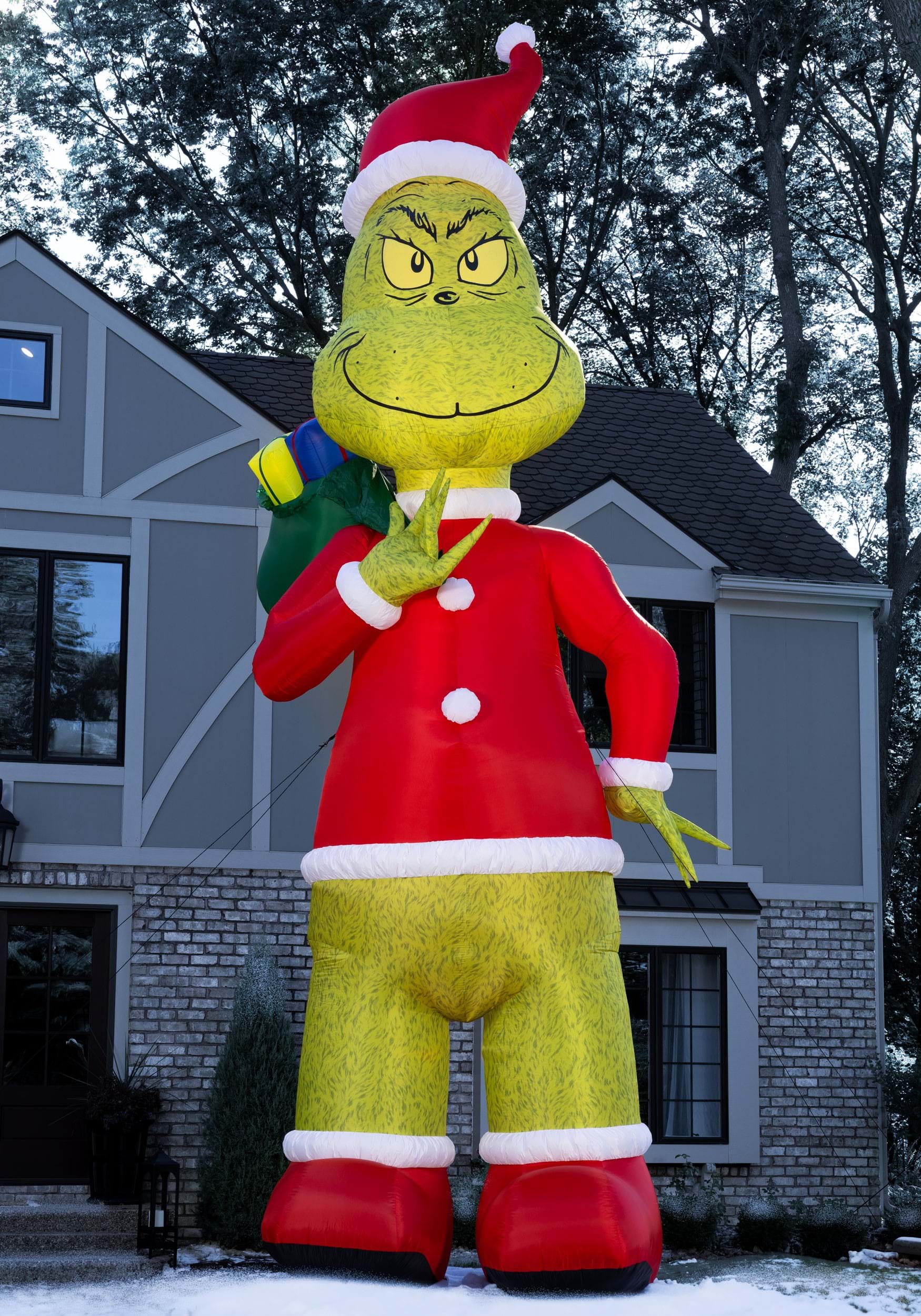 Here's a question. Have you ever wanted your holiday decorations to completely tower over your neighbors? Because that's exactly what this 25-foot-tall inflatable Grinch is going to do. It's taller than most single-story houses and will loom over your yard like some festive kaiju of Christmas crankiness.