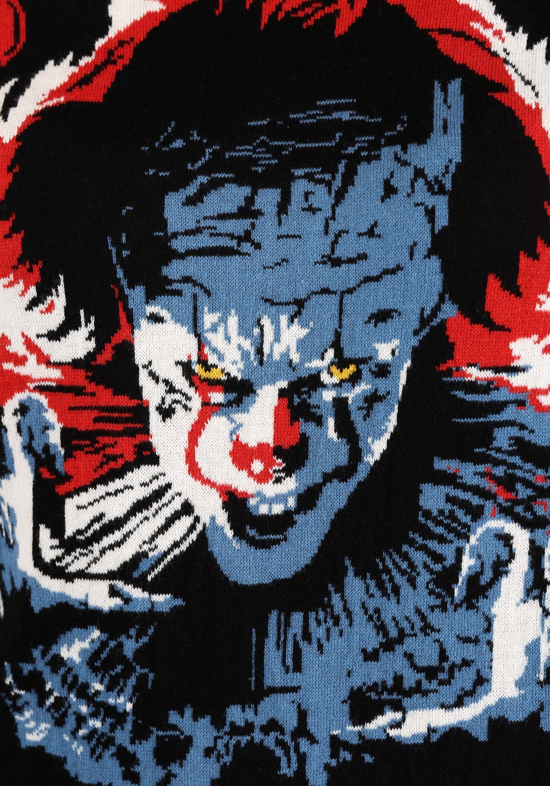 Get to know this eldritch horror from IT (2019) when you slip into this officially licensed Pennywise Sweater. Our Made By Us team investigated every circus from Derry to the sewer drains to bring you this macabre masterpiece. The sweater features Pennywise's classic design surrounded by a print of monstrous moments. Let your friends shiver and shake as they gaze at Pennywise staring right into their souls!