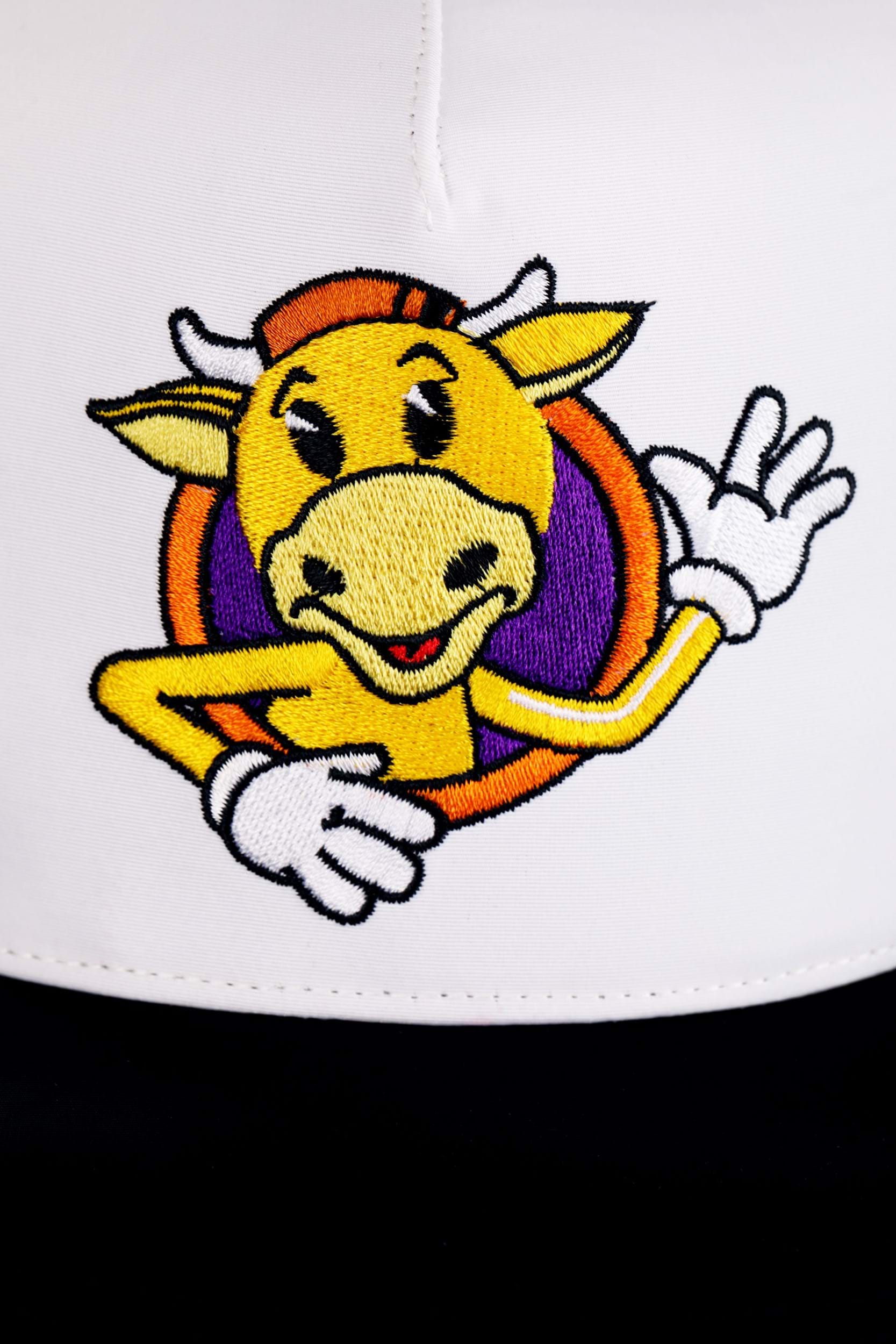 - Embroidered image of Mooby on front