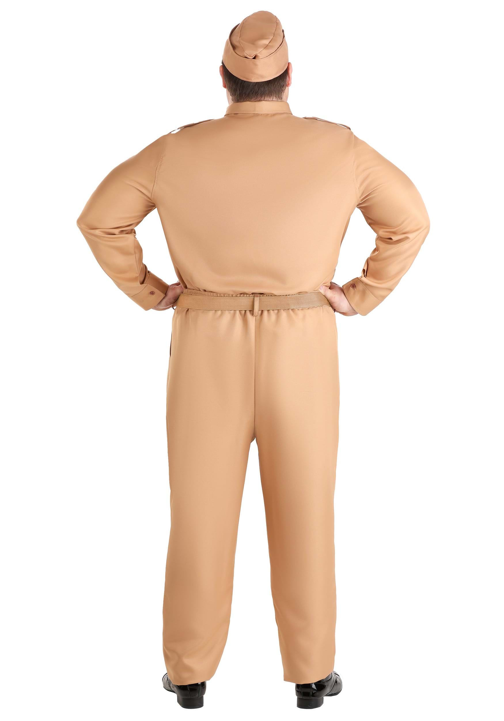 This four-piece ensemble includes a shirt, pants, tie, and hat, all in a light tan color inspired by classic WW2 military uniforms. The button-up collared shirt features chest pockets with button closures, sleeve cuffs, and shoulder details, so you'll look perfectly put together, even if you have no idea how to march in formation. The non-stretch polyester pants come with an elastic waistband in the back for a comfortable fit and belt loops, so you can accessorize like a true officer.