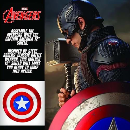 When Captain America throws his mighty shield, it's probably this officially licensed Captaiin America 12 Inch Shield! The molded plastic accessory is embossed and printed with a five-pointed white star set against a blue circle and surrounded by alternating red and silver rings. Elastic arm straps are attached to the back of the shield.