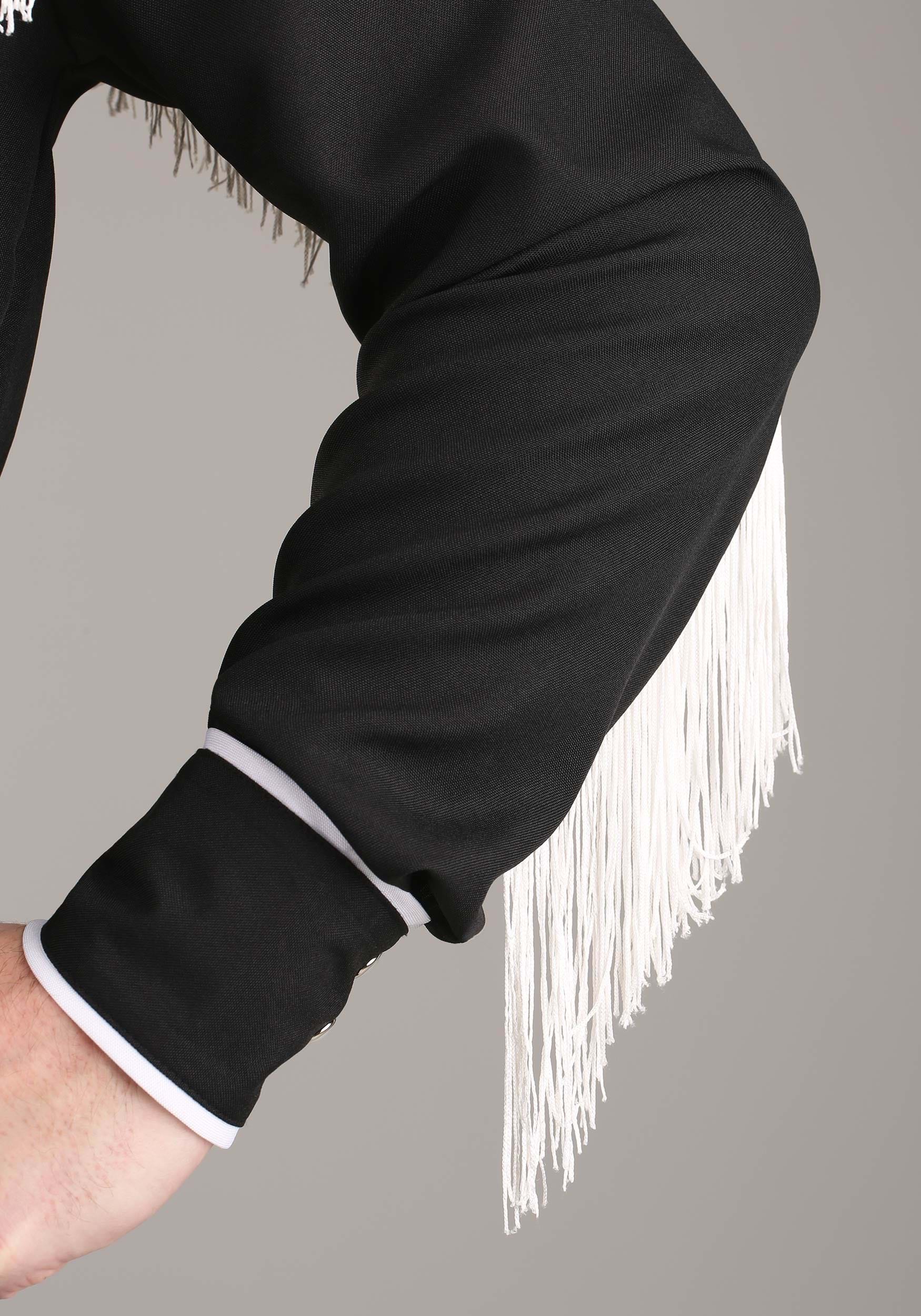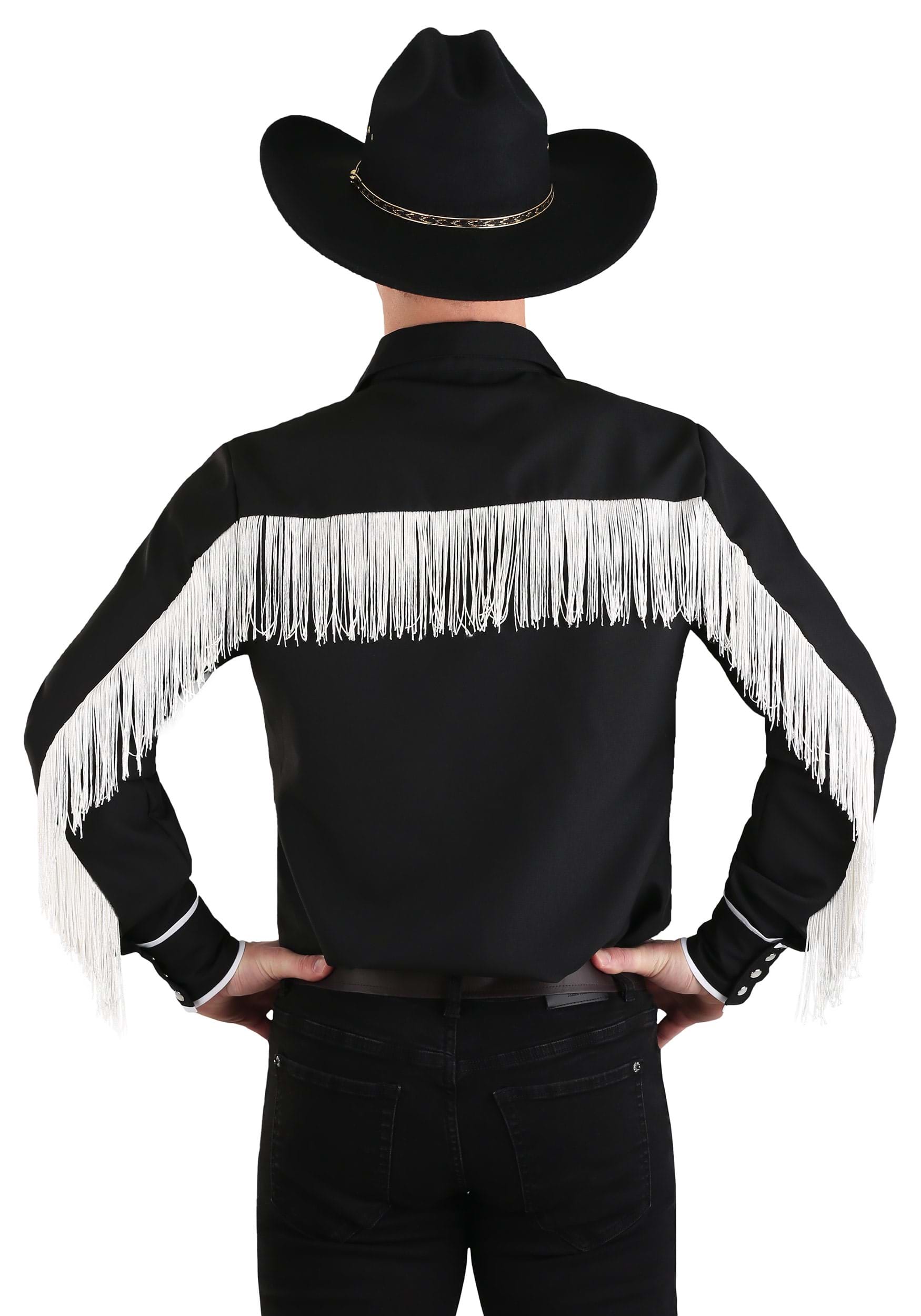 - Shirt has fringe along lower edge of yoke and along underarm sleeve seams