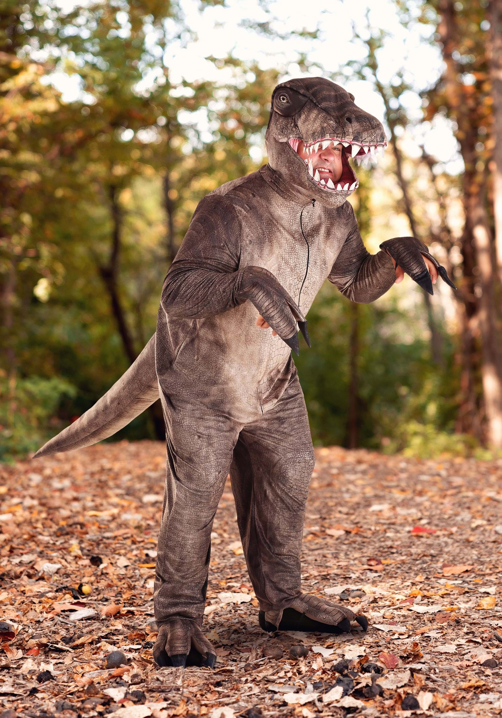 Yeah, we love dinosaurs here. Including the fact that dinosaurs eggs were the size of basketballs, and that the dinosaurs that lived by water usually left the best fossils. Now, if you asked us what dinosaurs make for the best Halloween costumes, we'd have to say this one right here. Imagine the Jurassic statement you'll make when you kick down the front door while wearing this Adult Plus Size T-Rex costume.