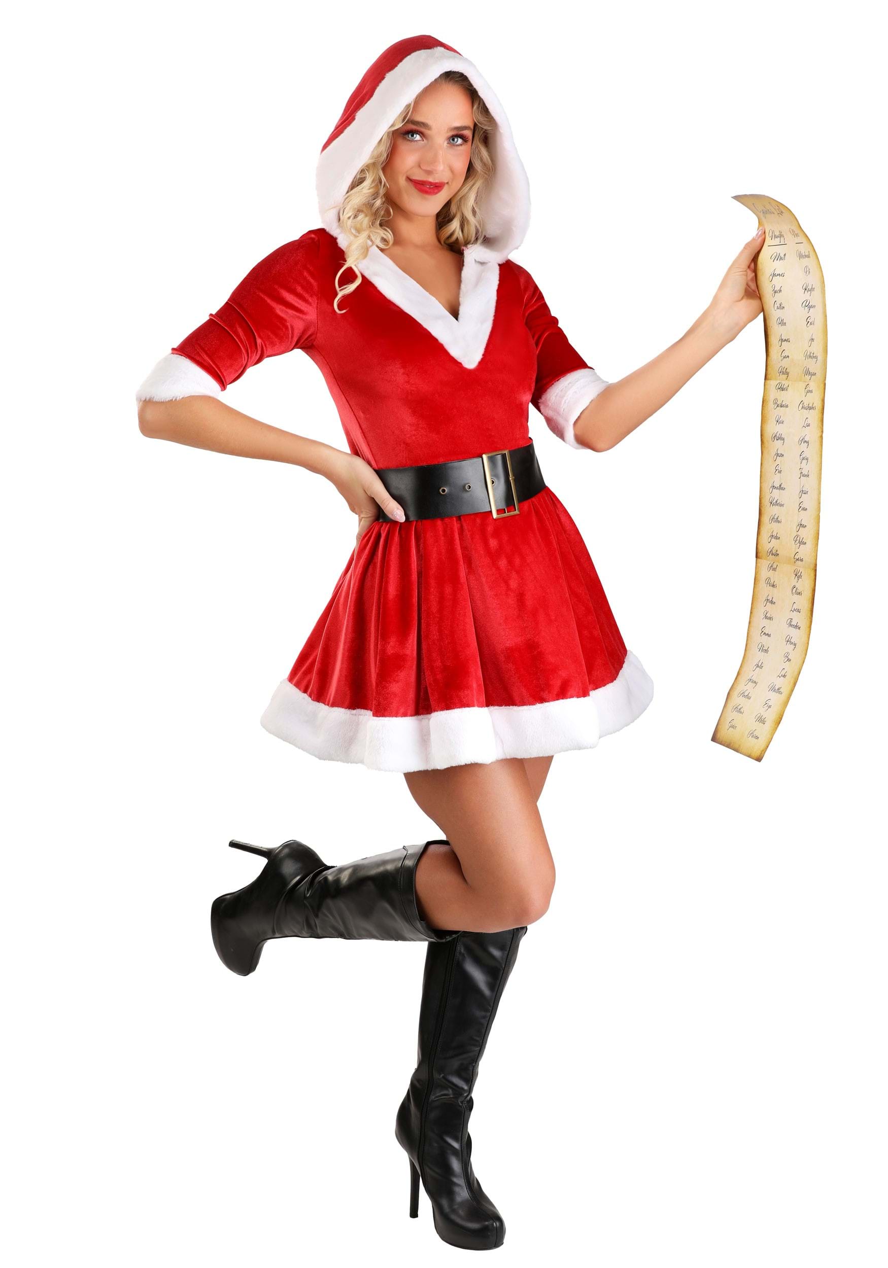 This is an exclusive Women's Spirited Santa Claus Costume.