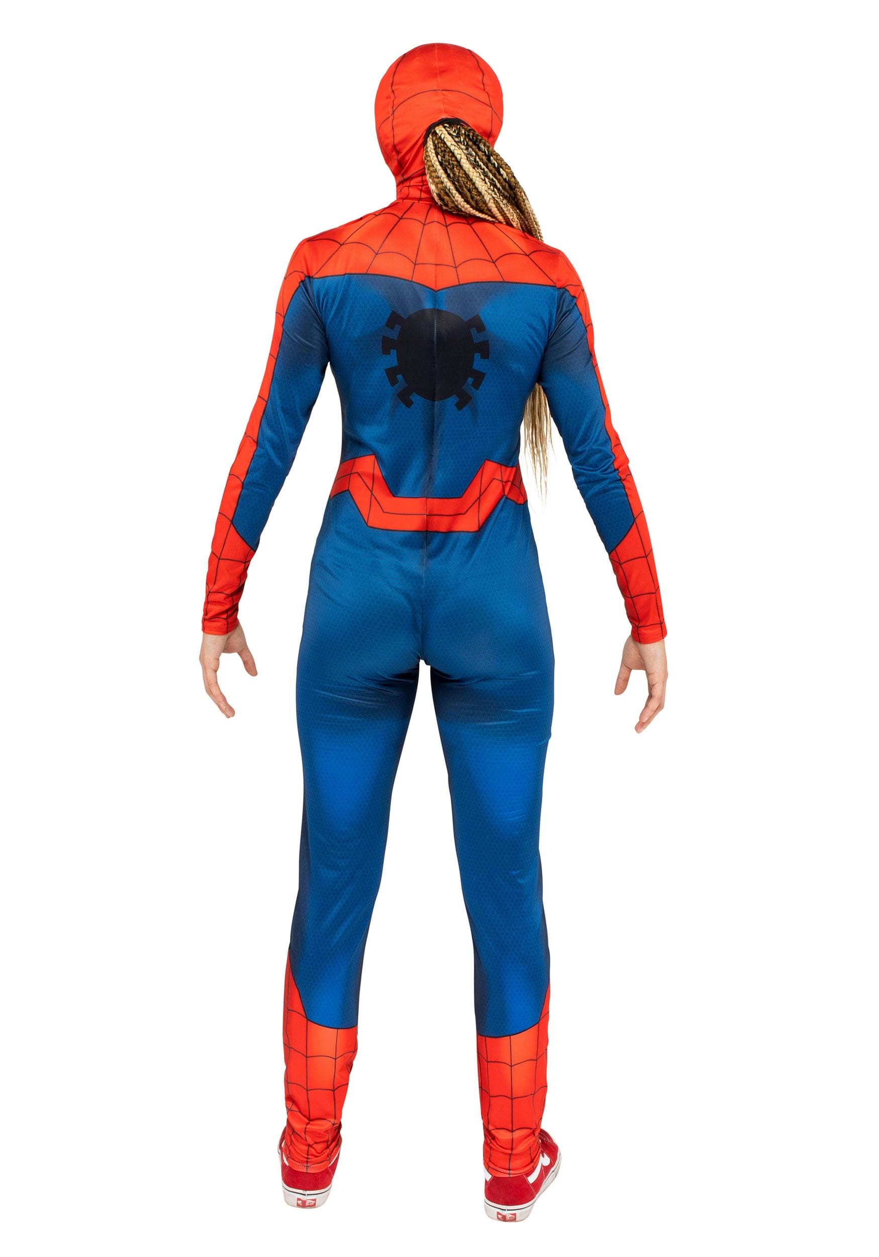 Step into the role of this universe's lifetime when you step into this Classic Spider-Man costume for women. This printed jumpsuit has all the iconic looks you're familiar with from the blue base to the red accents and black linework that makes up the webbing design. With Spider-Man's symbol emblazoned on the chest, the illusion of tall matching boots, and the addition of the jersey knit mask (with mesh vision ports), you've got everything you need to look the part!