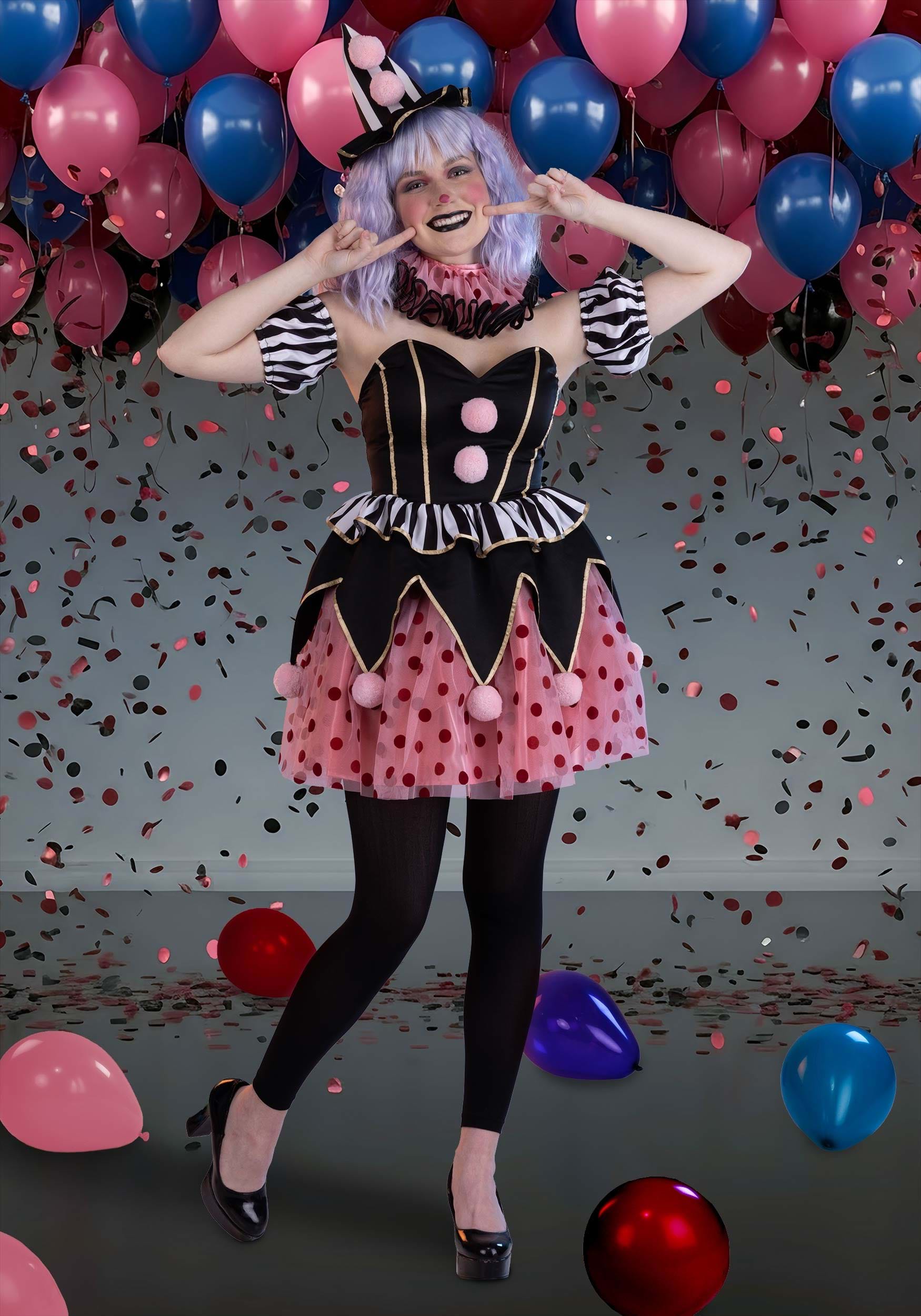 Whether going for a sweet or edgy clown style, our exclusive Cupcake Clown Women's Costume has you covered! Pair its versatile color palette and stylish design with unique clown wigs, shoes, and other accessories to create the not-quite Harley Quinn or classic circus clown vibes you've been dreaming of.
