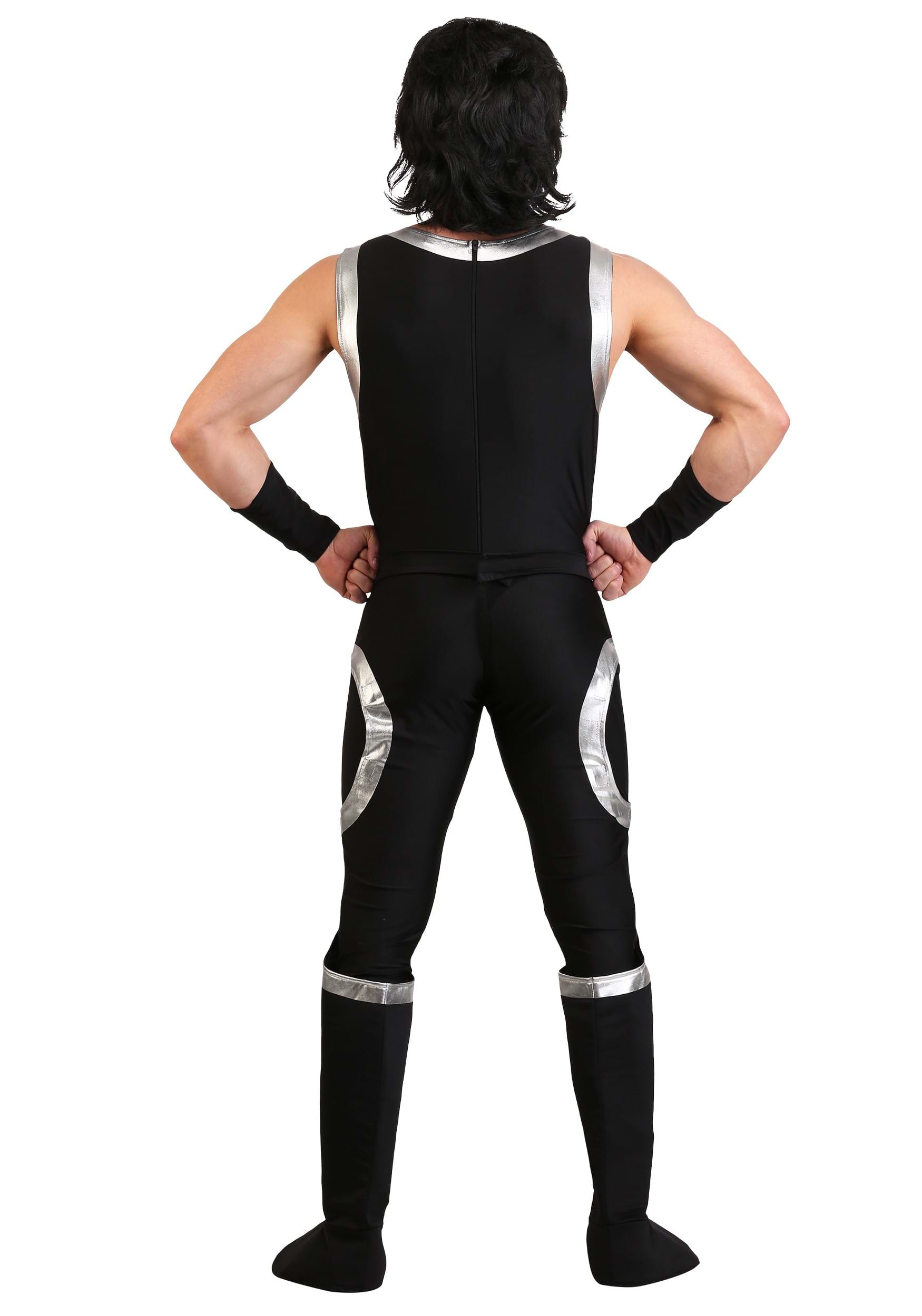 The Catman KISS Costume is inspired by Eric Singer's stage outfit and it's 100% ready to rock. It starts with a pitch-black jumpsuit that stretches to fit. The front and sides feature silver, metallic accents to help you look like a true rock and roll legend. The black belt fits around the waist and has a silver, metallic cat emblem in the front. The black gauntlets fit around your wrists, for maximum rocking, and the finishing touch to this outfit comes in the form of a simple pair of boot covers. They fit over any pair of shoes, so you can wear your favorite pair of kicks with this outfit, while still maintaining fully KISS style.