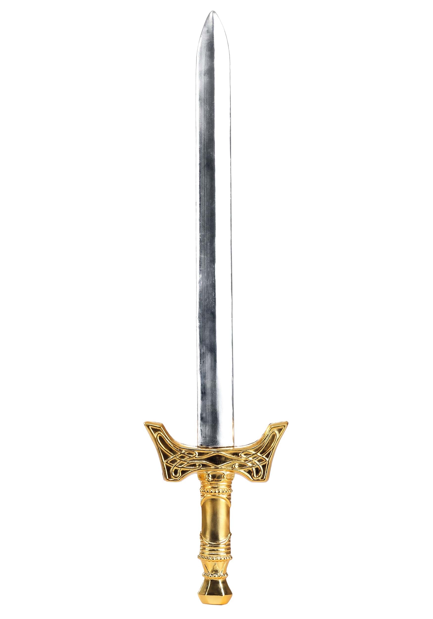 The molded plastic medieval sword is designed to look like a real knight's sword—forged steel blade and gold plated grip—which warriors would have used in Medieval times. The sword blade is 20" long, while the grip is only 7" long or 27". Pair this Knight Toy Sword, exclusively made by us, with any costume, or use it as a toy for imaginative play!