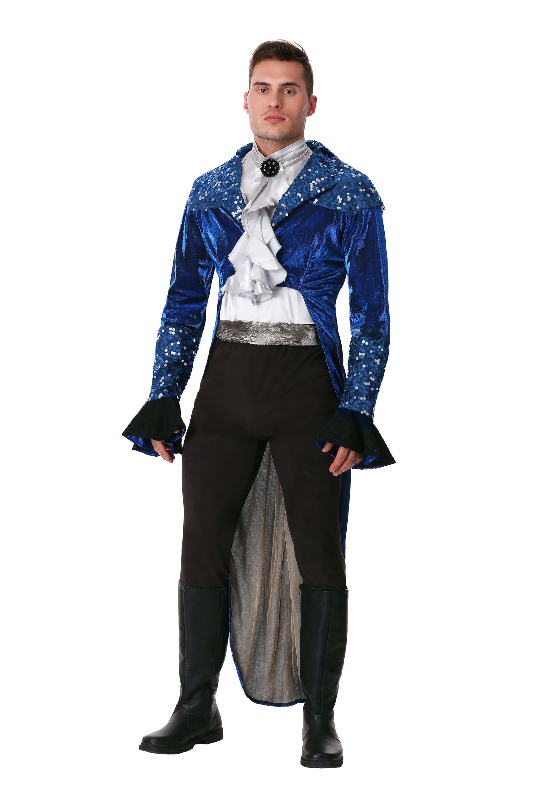 After conferring with numerous sorceresses and faery critters, our team of dynamic designers have made your dream come true with this officially licensed Jareth Costume. This exclusive look is a replication of Jerath's ballroom attire including a silver satin shirt front that doesn't skimp on the ruffles and features a faux diamond brooch at the neck. The pants are slim-fit with a high waist, and the silver wrap belt has hook and loop fastener at the back. The real gem is the blue and silver jacket with a high Victorian collar and sequin detailed shoulders, black lace cuffs, and a long coattail. All you'll need is a magic crystal and the dream is a reality!