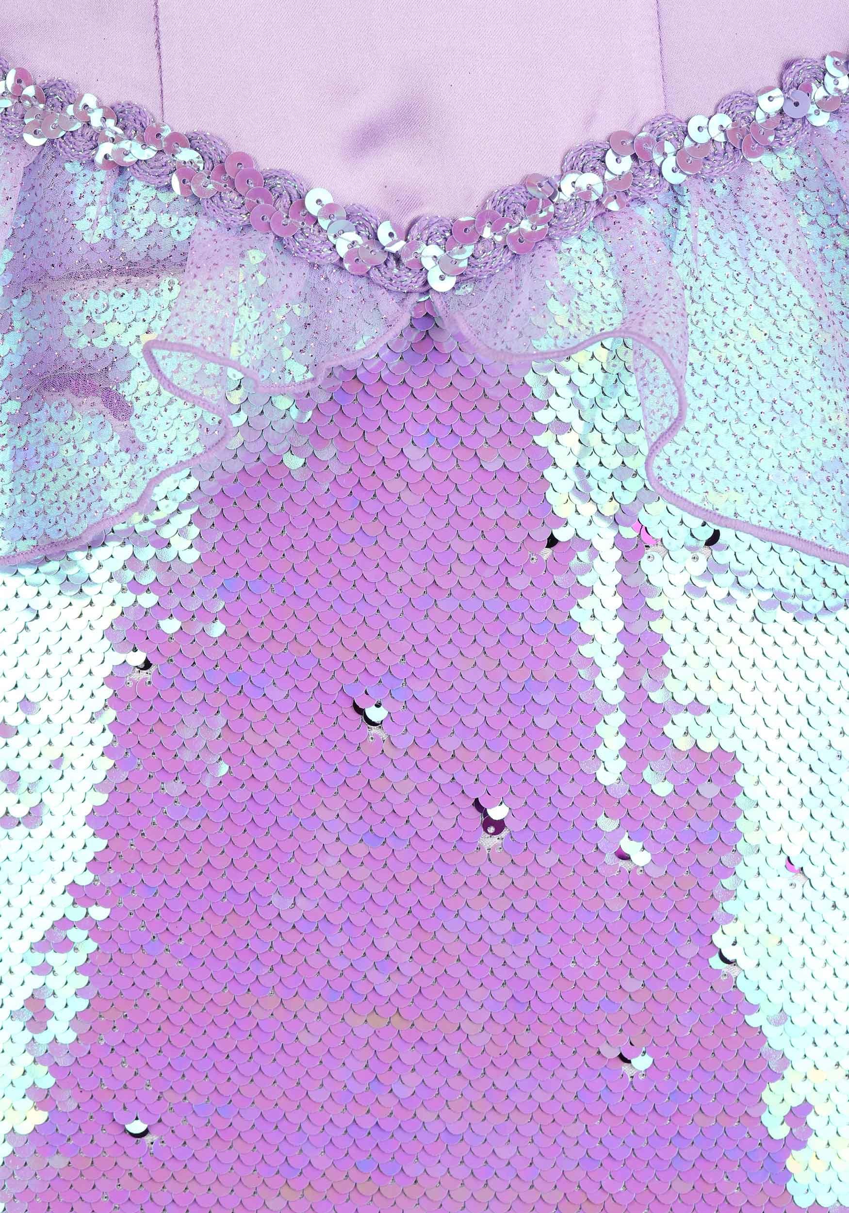 - Skirt front is covered w/ iridescent sequins arranged to look like fish scales
