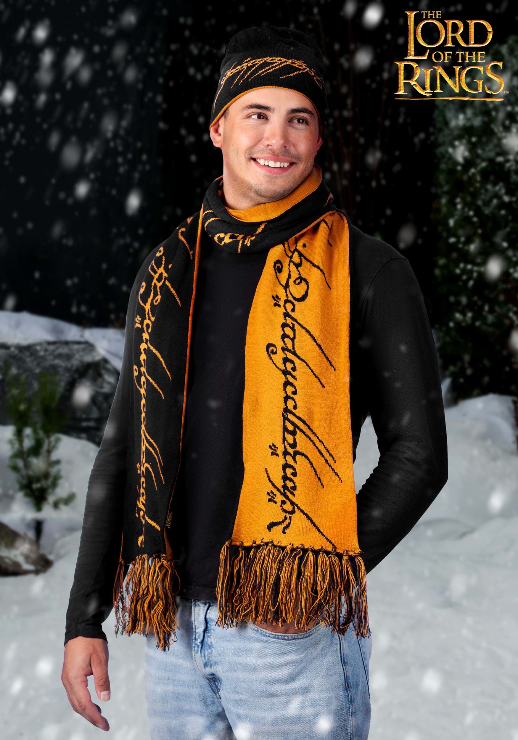 You know how Gandalf told Frodo, "Keep it secret, keep it safe?" Well, he probably wasn't talking about winter wear, but if he were, this would be the set he'd want you to guard. This is no ordinary knit hat and scarf combo, folks. This is the Lord of the Rings One Ring Scarf and Knit Hat Set, and it's as magical as it sounds.