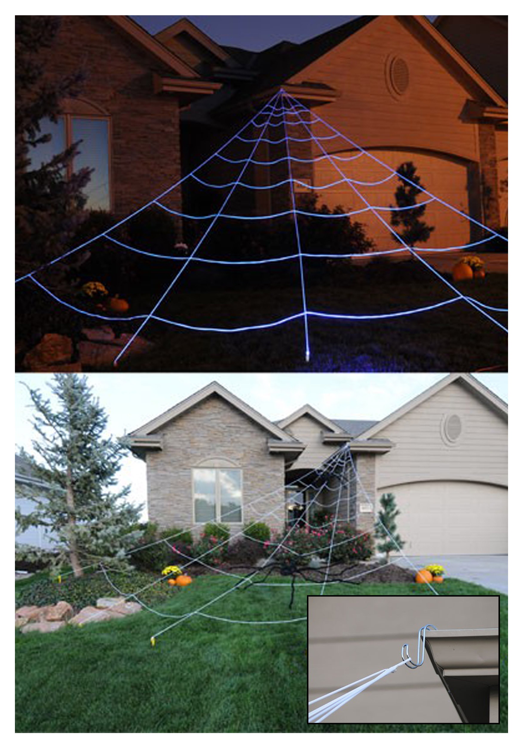And with a web like that, there's got to be a huge spider hiding around somewhere close. Lend your yard (and house) to a large, eight-legged friend with this Mega Spider Web. Plus, you're sure to scare a few arachnophobes (though if you are one of them, you may want to hide out inside for the next month). This mega spider web measures 23’ x 18’ and glows under a blacklight. Gutter hooks allow you to attach it to your gutters and the anchor hooks go into the ground to keep it in place all season!