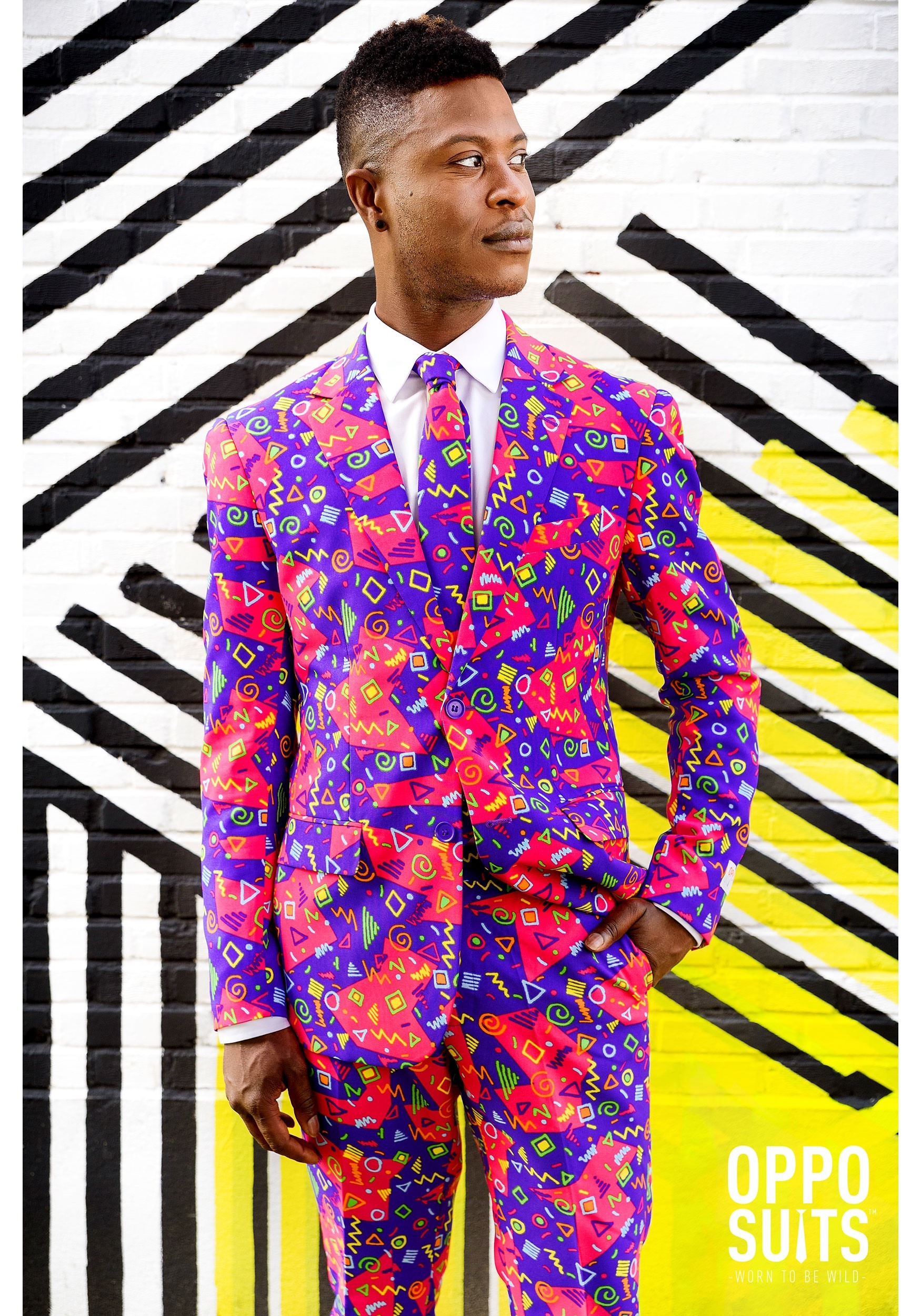 Oh, no. Wait. There totally is an outfit that's more '90s than you can even handle. This Fresh Prince Opposuit will have you looking like you brought 1994 along with you. With purples, pinks, neon yellows and a bunch of wild squiggles we can't even begin to describe, this suit set will have you ready to move in with your uncle and auntie in Bel Air.