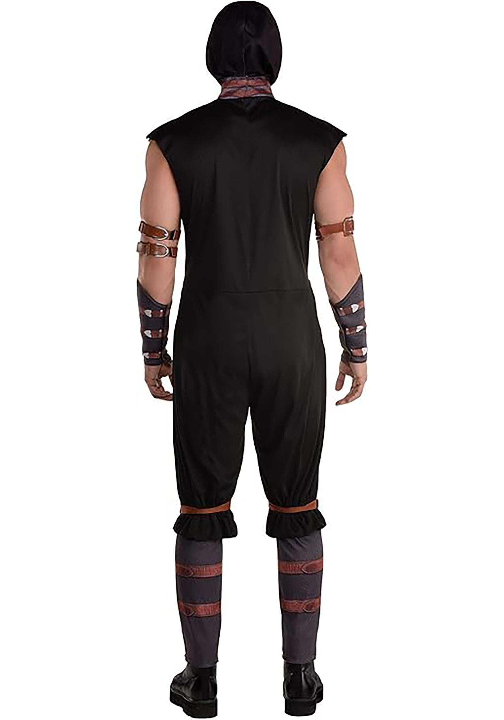 The arm guards feature printed details, including fake belts, to add an extra layer of realism without the hassle of actual armor. And, of course, no Scorpion look would be complete without his hood and iconic yellow face mask, which covers the mouth and nose for that perfect menacing ninja effect. Once you put it all on, you'll be ready to enter the tournament—just maybe avoid throwing any actual spears at your opponents.