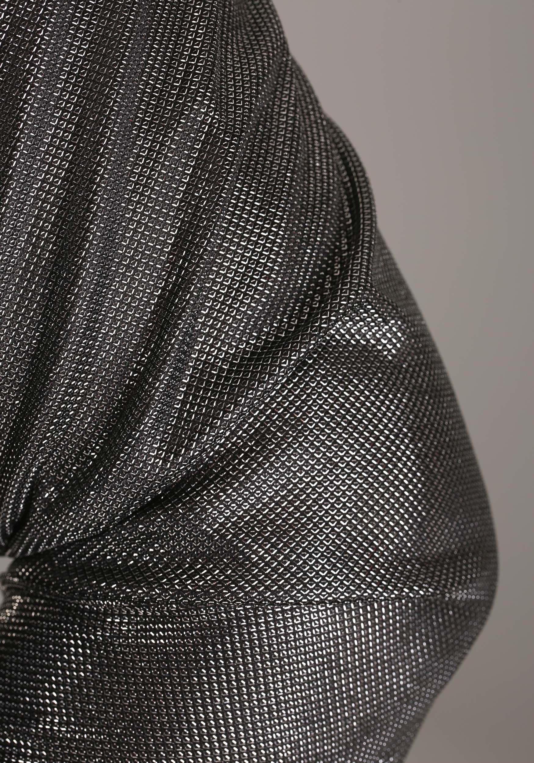 - Long sleeved pullover shirt is made of metallic mesh meant to look like chain mail