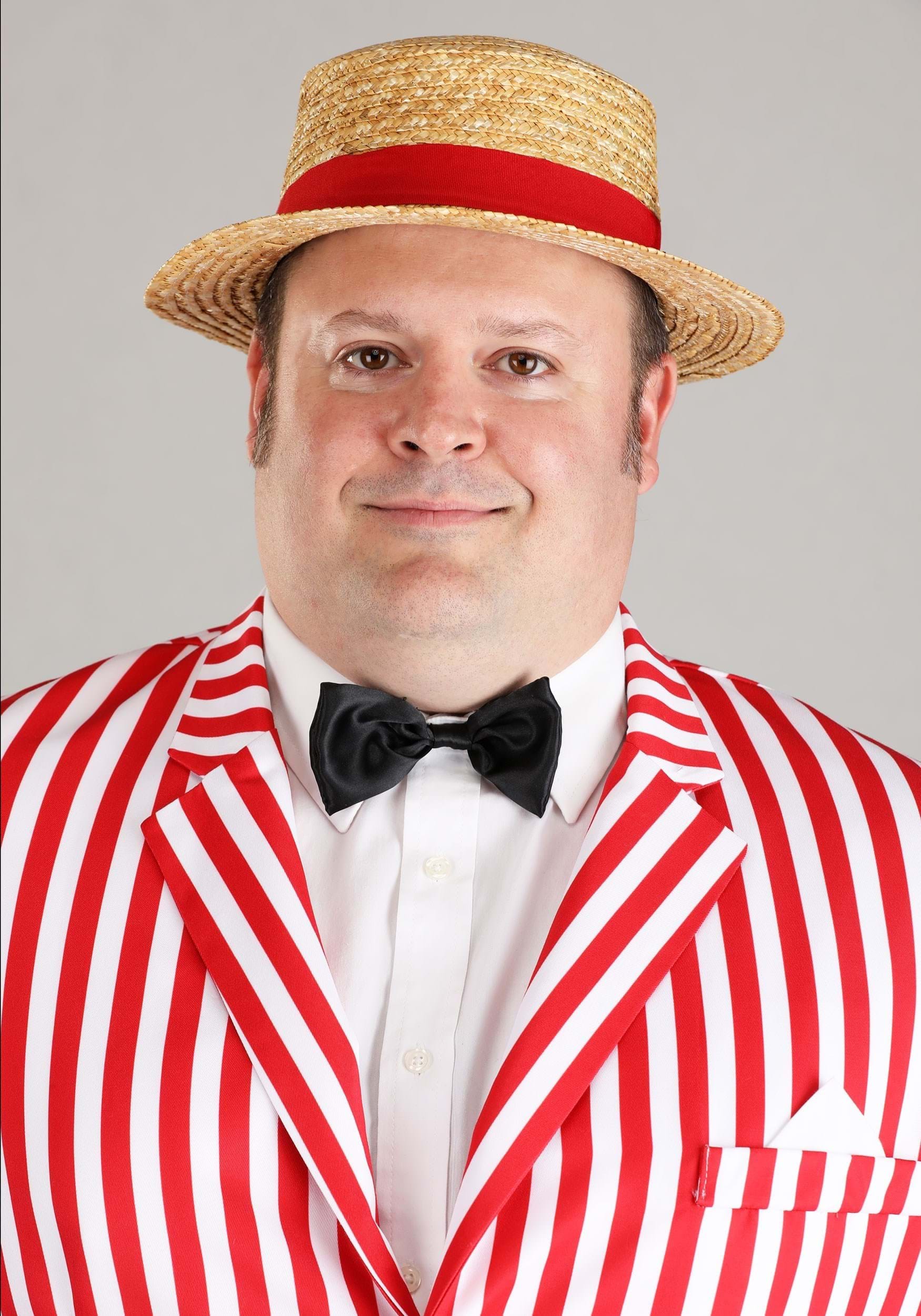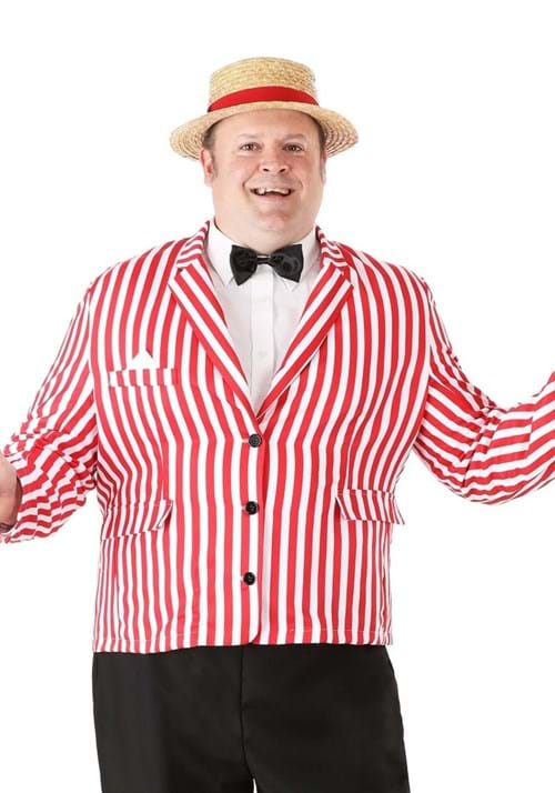 Enter our exclusive Roaring 20s Plus Size Jacket Costume for Men, a fun period costume that will grab eyes without implying you’re an heir to a railroad baron’s fortune. Those red and white stripes do wonders at getting the attention we lonely souls crave and convey, “Hey, I’m here to have a good time.” Best of all, this is part of our Made By Us collection, crafted with love and care by our team of in-house designers. So you can worry less about the quality of our buttons and more about how to scram if the coppers show. And if some important-looking guy approaches you, muttering about a green light and begging you to help him with a girl, just get your fill of gin and see yourself out. Trust us.