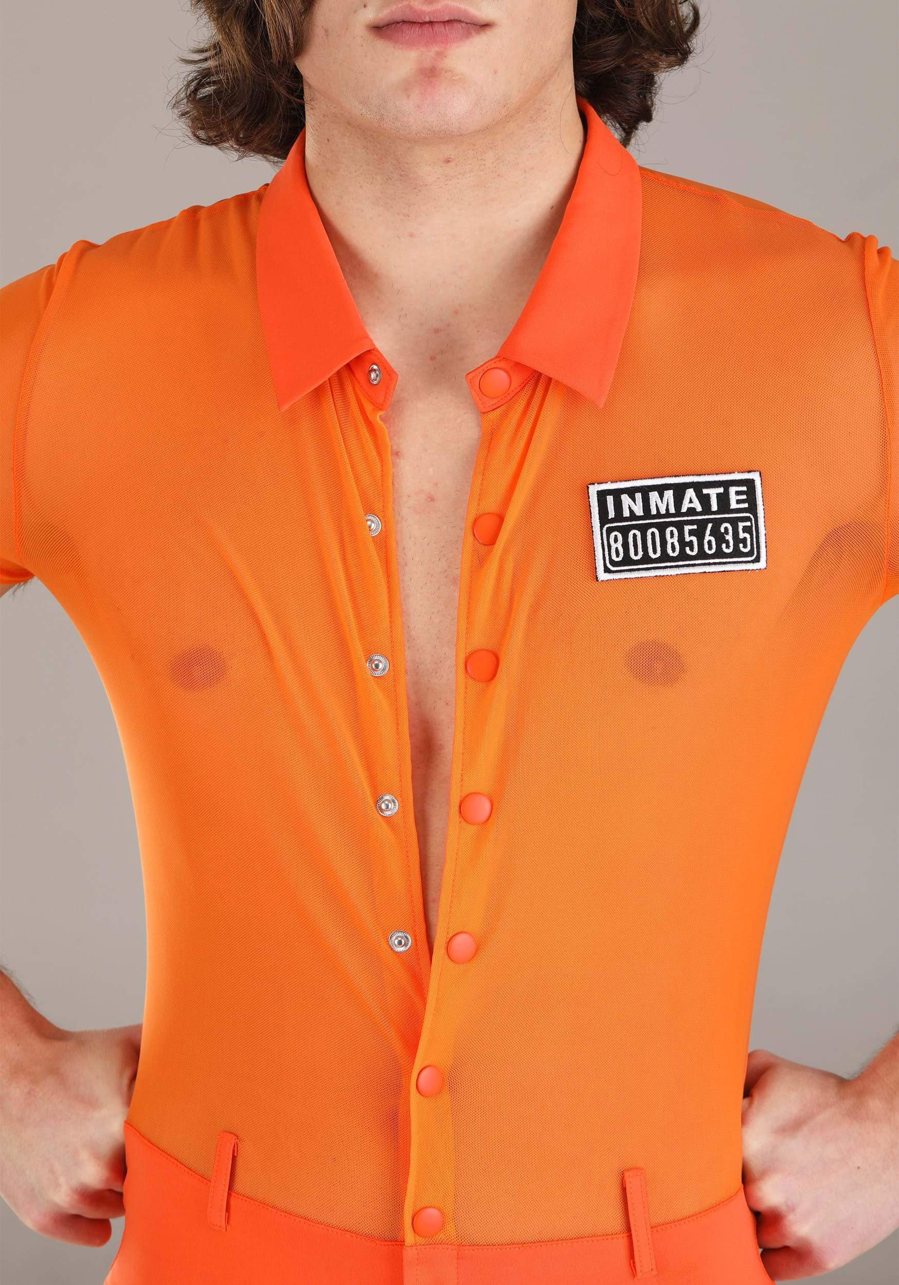 This is an exclusive Men's Sexy Orange Prisoner Costume.