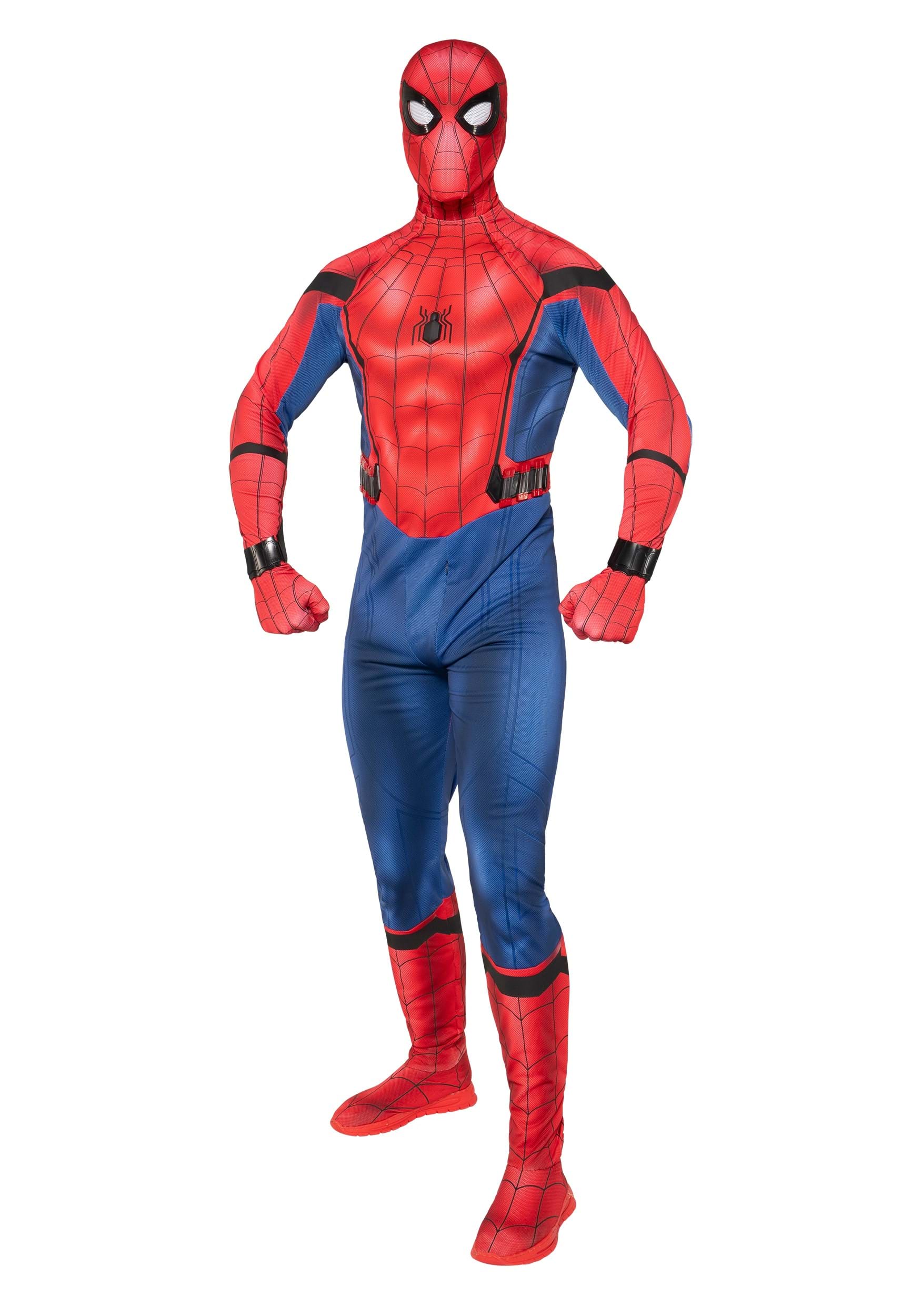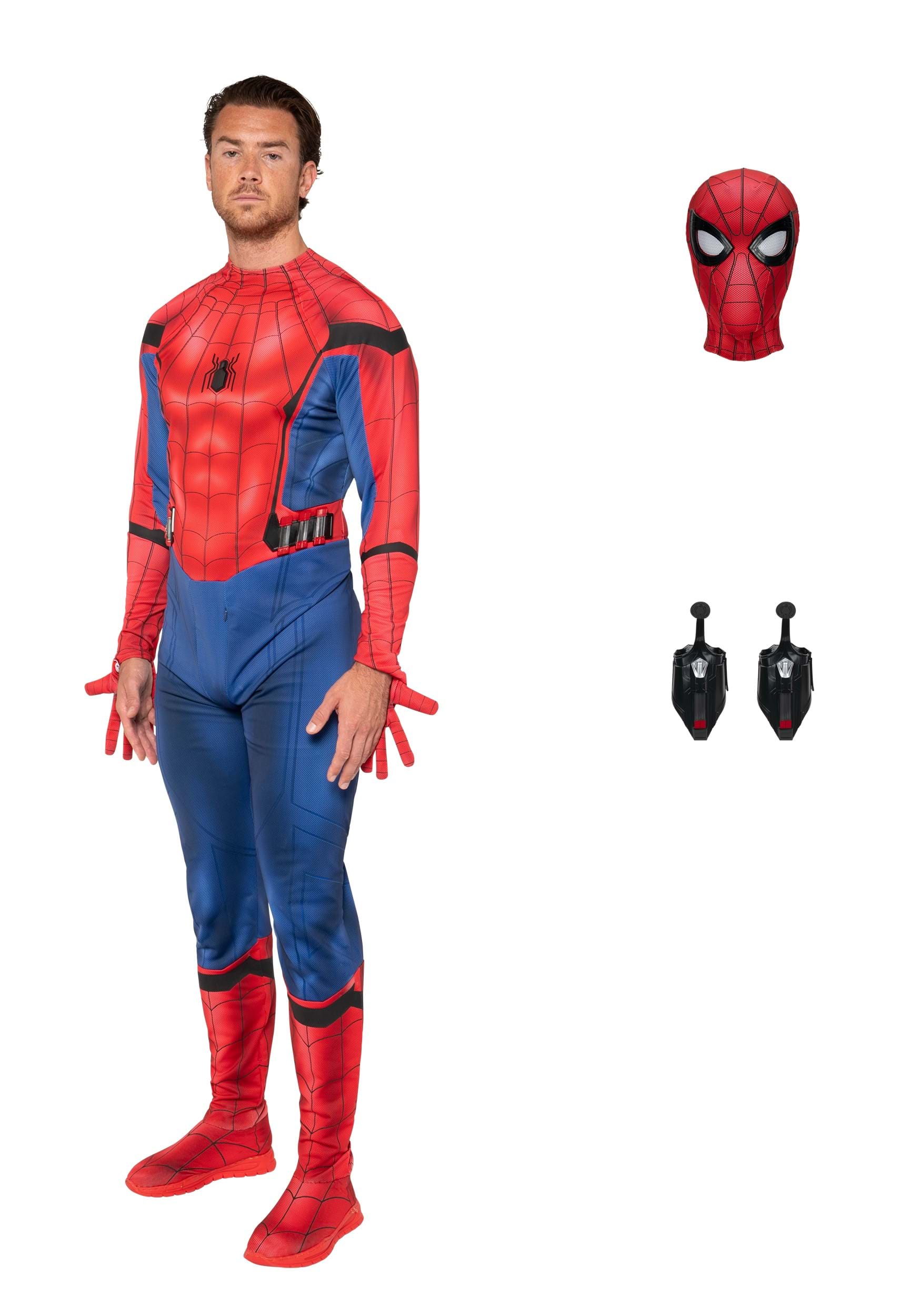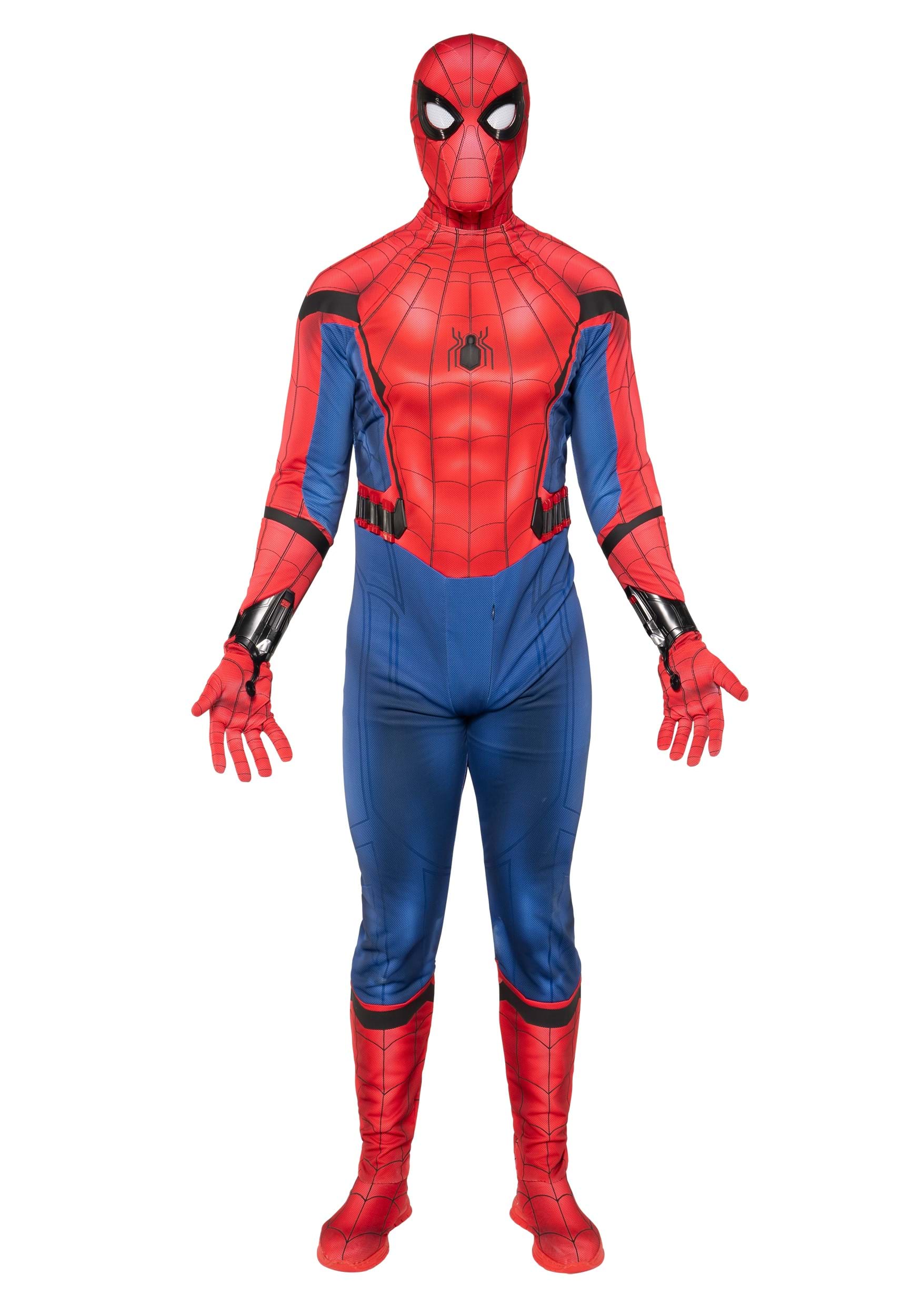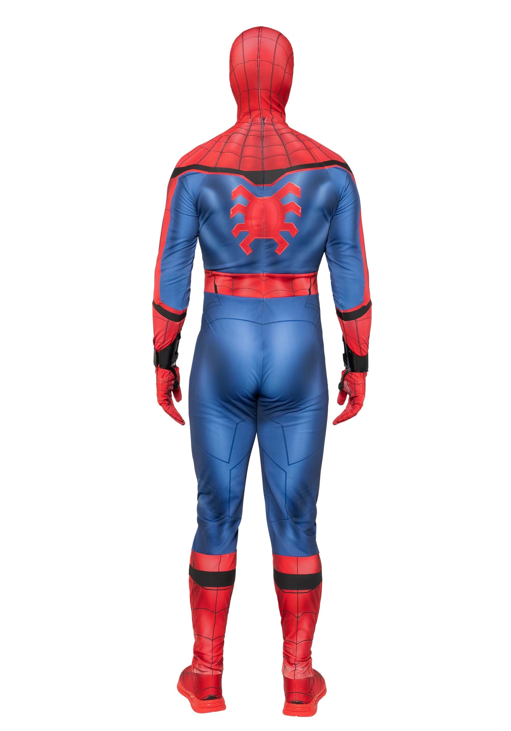 This Spider-Man costume is inspired by the style suit from Spider-Man: Homecoming and is designed to turn anyone into the next web-slinger in style. The four-way stretch spandex suit allows for full range of motion, so you'll be ready to swing through any obstacle that comes your way. Detailed weblines are printed across the suit, with a raised spider emblem on the chest for that extra pop of authenticity.