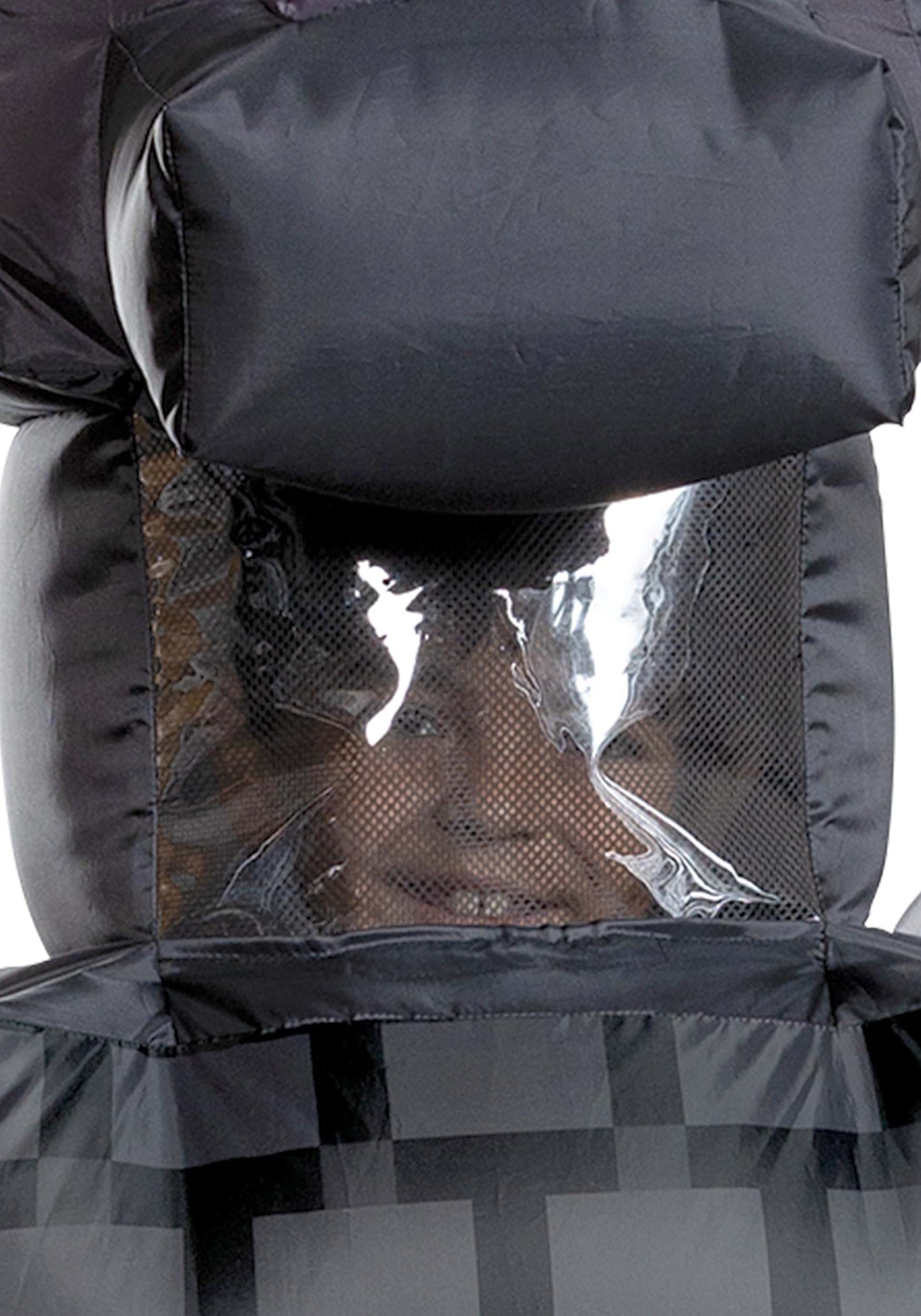 Crafted from durable windbreaker fabric, this inflatable costume is ready for any quest. The back zipper makes it easy to suit up, while elastic cuffs keep your kiddo snug as they soar around their imaginative world. The costume's head and arms are fully enclosed, with a plastic view port in the front, ensuring their vision stays sharp. A fan mounted at the back of the right hip keeps things inflated—add 4 AA batteries (not included) and they are good to go! Officially licensed, this costume captures the iconic blocky design of the Ender Dragon down to the last detail.