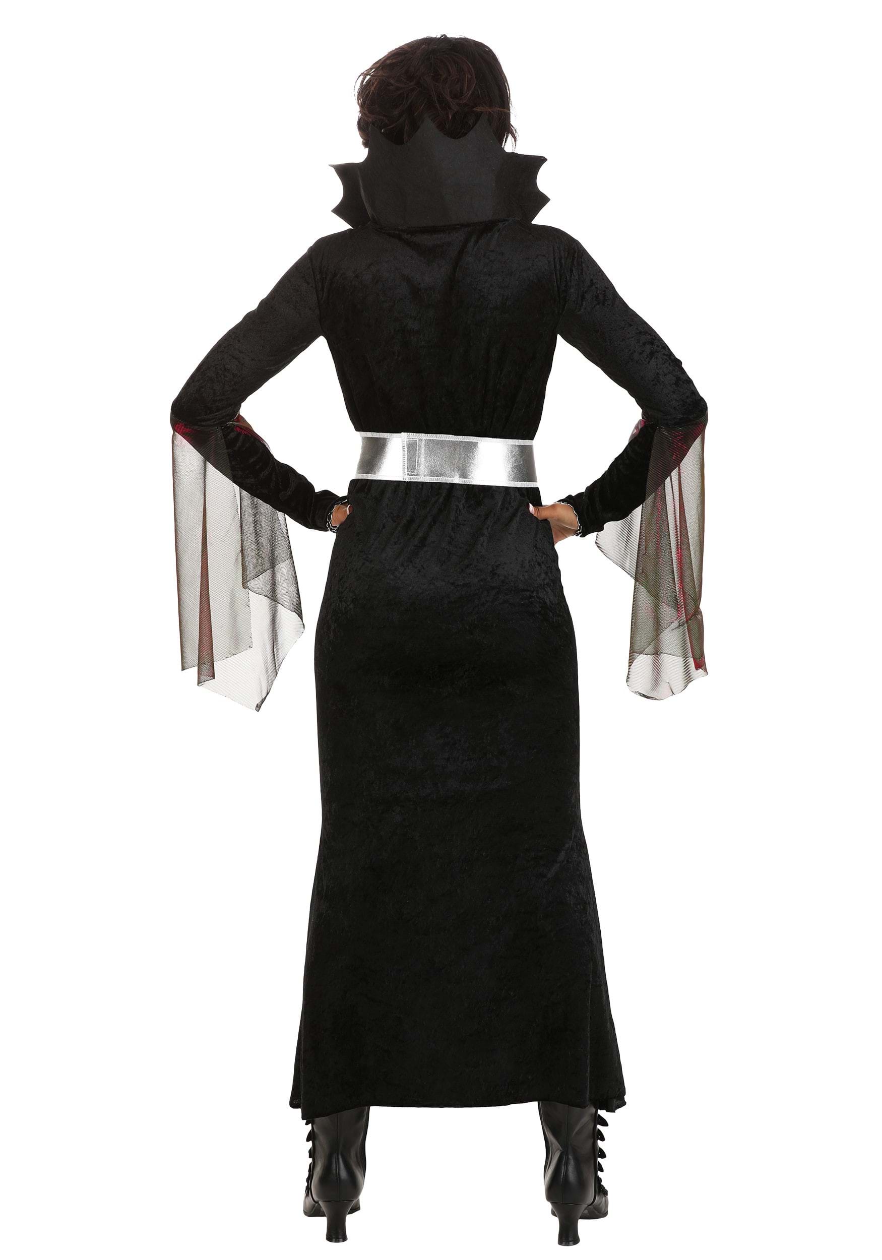 Choose your own origin story when you wear this exclusive Mystic Sorceress Costume Dress for Women! The pullover velour dress has a bodice inset made of crimson faux snakeskin and criss-crossed with metallic silver braid. The Elizabethan-style collar is also made of faux snakeskin and adds an exciting touch of drama. The long sleeves are decorated with a sheer mesh overlad that drapes bell-style from the elbows to the wrists. The silvery faux leather belt secures at the back of the waist and features an attached snakeskin drape that's edged in more faux leather.