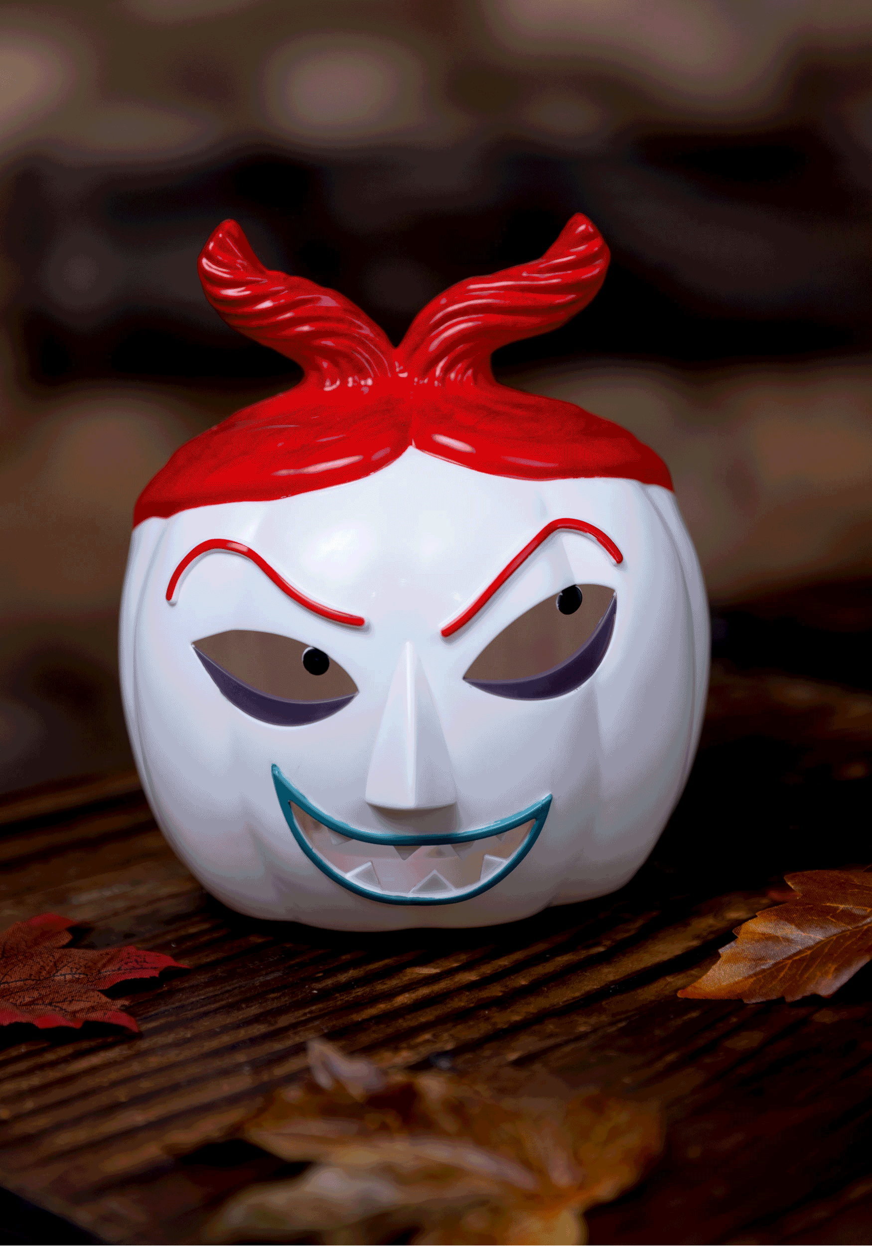 As one of Halloween Town's biggest troublemakers, Lock is always up for a prank or a scheme. He can usually be found wearing his favorite devil's mask to go with his pointed tail, but he's also great at disguising himself as a pumpkin if need be.