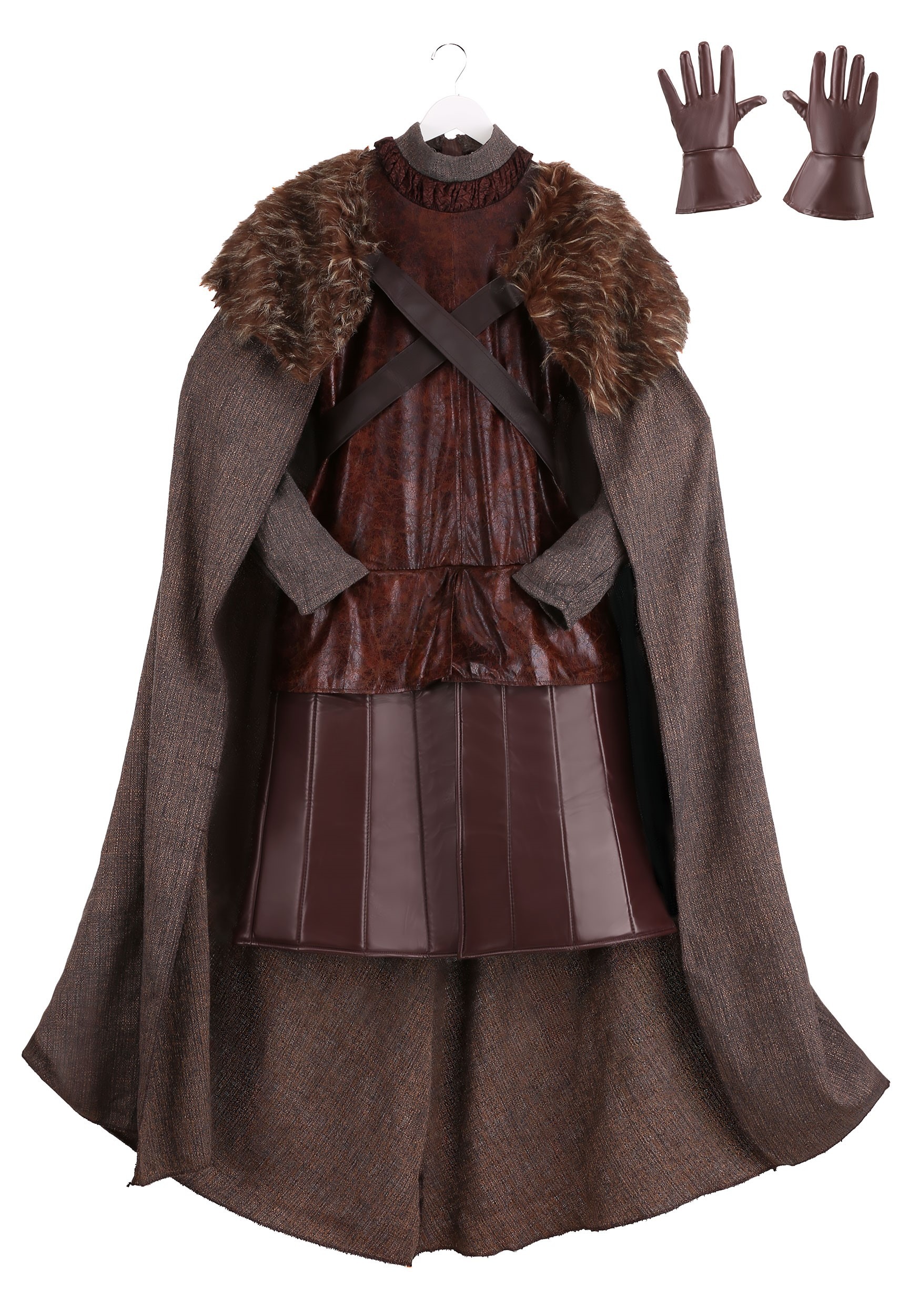 This northern king costume comes with everything you need to ensure that everyone you cross knows you are royalty and knows that they should bow down to you at a moment’s notice. The adult costume comes with a tunic that is faux suede and leather and has a back zipper for easy on and off. The tunic’s faux linen collar and sleeves give it a realistic look. No king is king without a cape, and this cape does not disappoint. The full-length linen cape has a luxurious faux fur collar and fastens with faux leather straps and a metal buckle. Be sure your grip on your sword stays tight with the faux leather gloves with flared, wide cuffs that will make an impression on your enemies. Add a pair of brown boots, cropped pants, and a toy sword accessory for a complete look that will earn you respect from all of the soldiers and peasants under your control.
