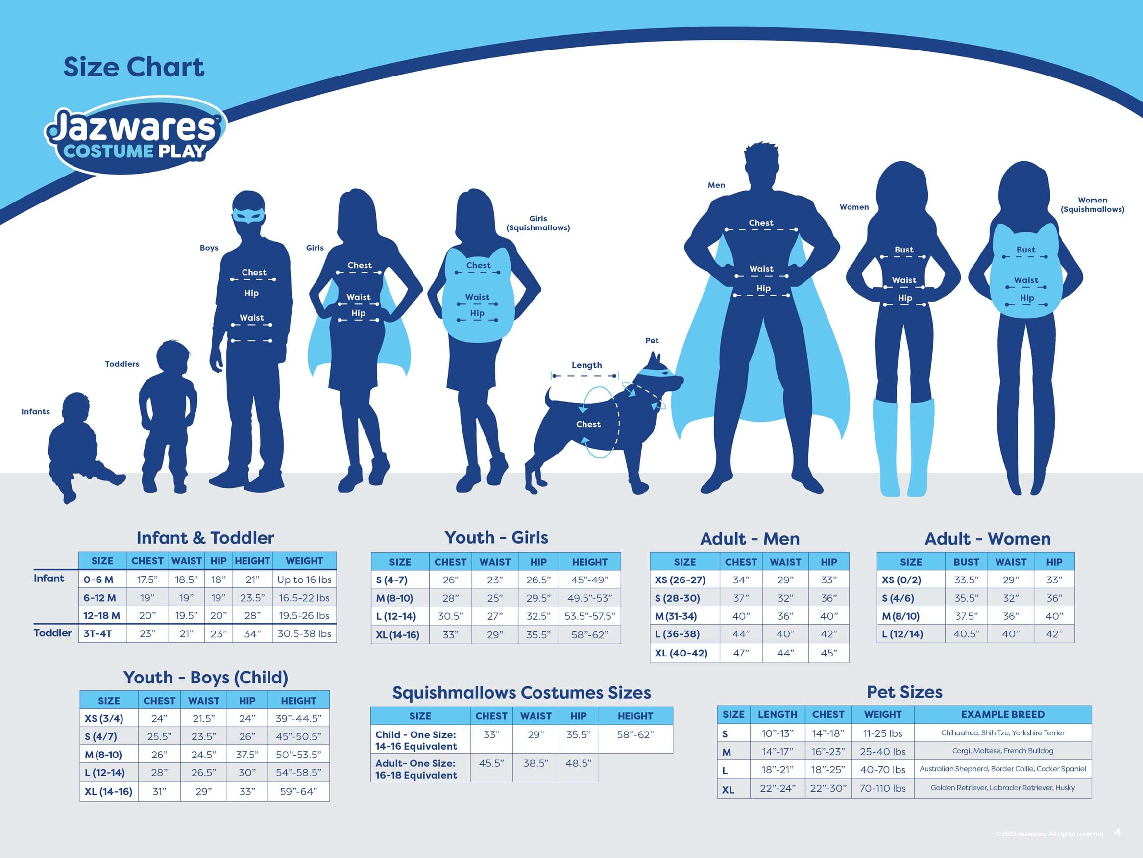 | 2X | Pants Waist | 35" - 44" | 89cm - 112cm |