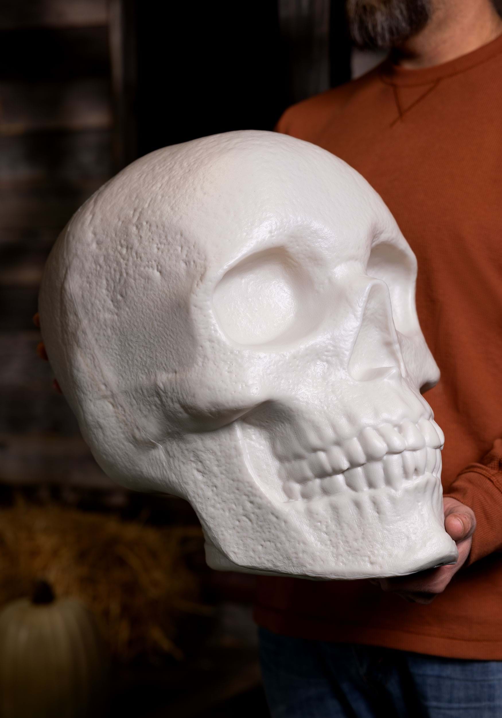 This unique Halloween decoration is sure to stun, starting with its intricately sculpted form! The Made By Us decoration is made from hard plastic that retains the delicate chipping, veining, and essential skull features (like eye sockets and teeth) to give it a realistic look.
