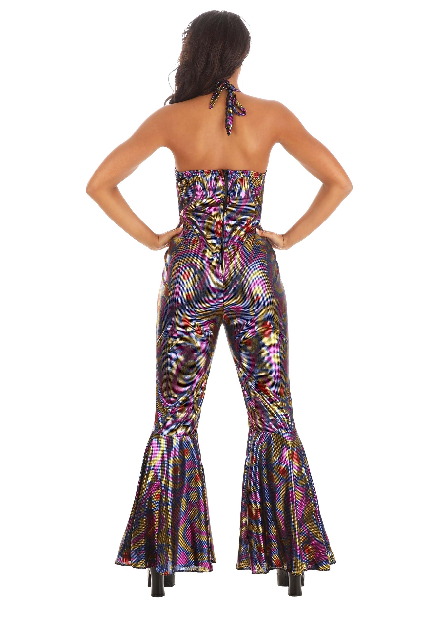 Our Women's Sexy Disco Jumpsuit Costumes offers exactly that! With a sleek shape, outstanding color pattern, and tons of shimmer, we're sure it'll have you ready to shine on dance floors, on Halloween streets, and at every groovy venue.