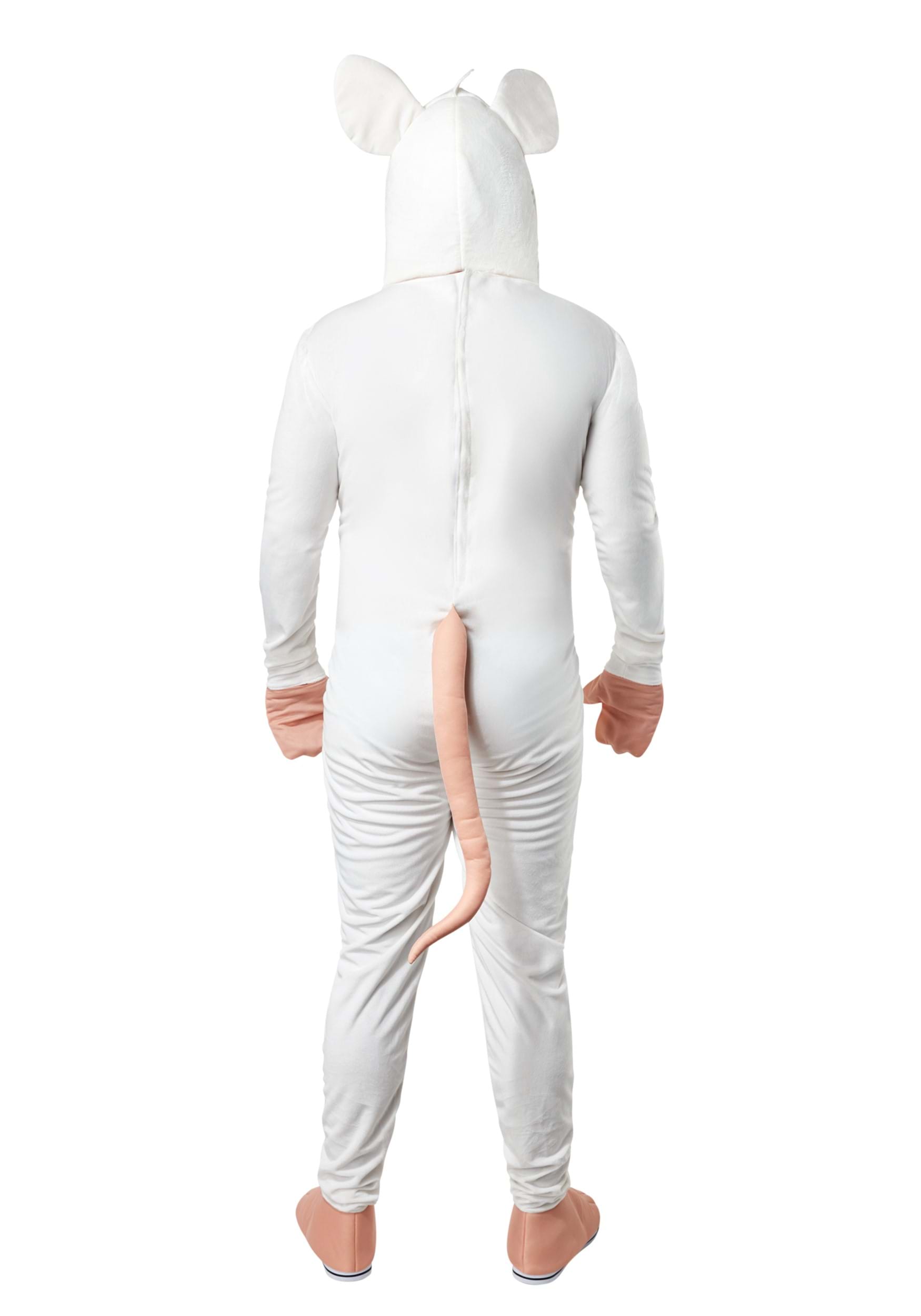It is time to step into the role of a lifetime—and maybe save us all from disaster—when you climb into this officially licensed Pinky costume from Pinky and the Brain. This iconic outfit is a white jumpsuit with attached shoe covers, fold-over mitts, a padded tummy, and a mouse tail in the rear! It fastens at the back of the neck and has a hood that shows off Pinky's face and ears in 3D detail. Team up with a friend in a matching Brain costume to take over the world! (Just remember your codeword: Narf!)