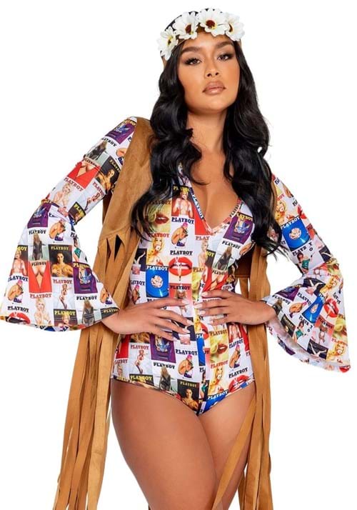 - Headband is 4 fabric flowers sewn to a band of the same faux suede fabric as the vest. Tie as desired.