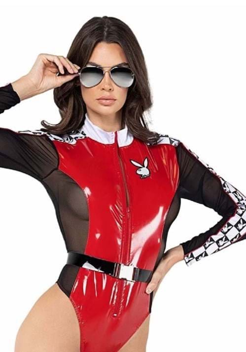 Step into the limelight and join Team Playboy with this stunning costume. The bodysuit is modeled after a sleek racing suit featuring the iconic Playboy logo on the front. Crafted with attention to detail, the front and back are made of red stretch knit material with a shiny faux patent finish, while the sides boast alluring mesh, adding a touch of sexiness to your ensemble. The costume effortlessly combines the thrill of the race track with the iconic Playboy brand, making it a standout choice for any Halloween event.
