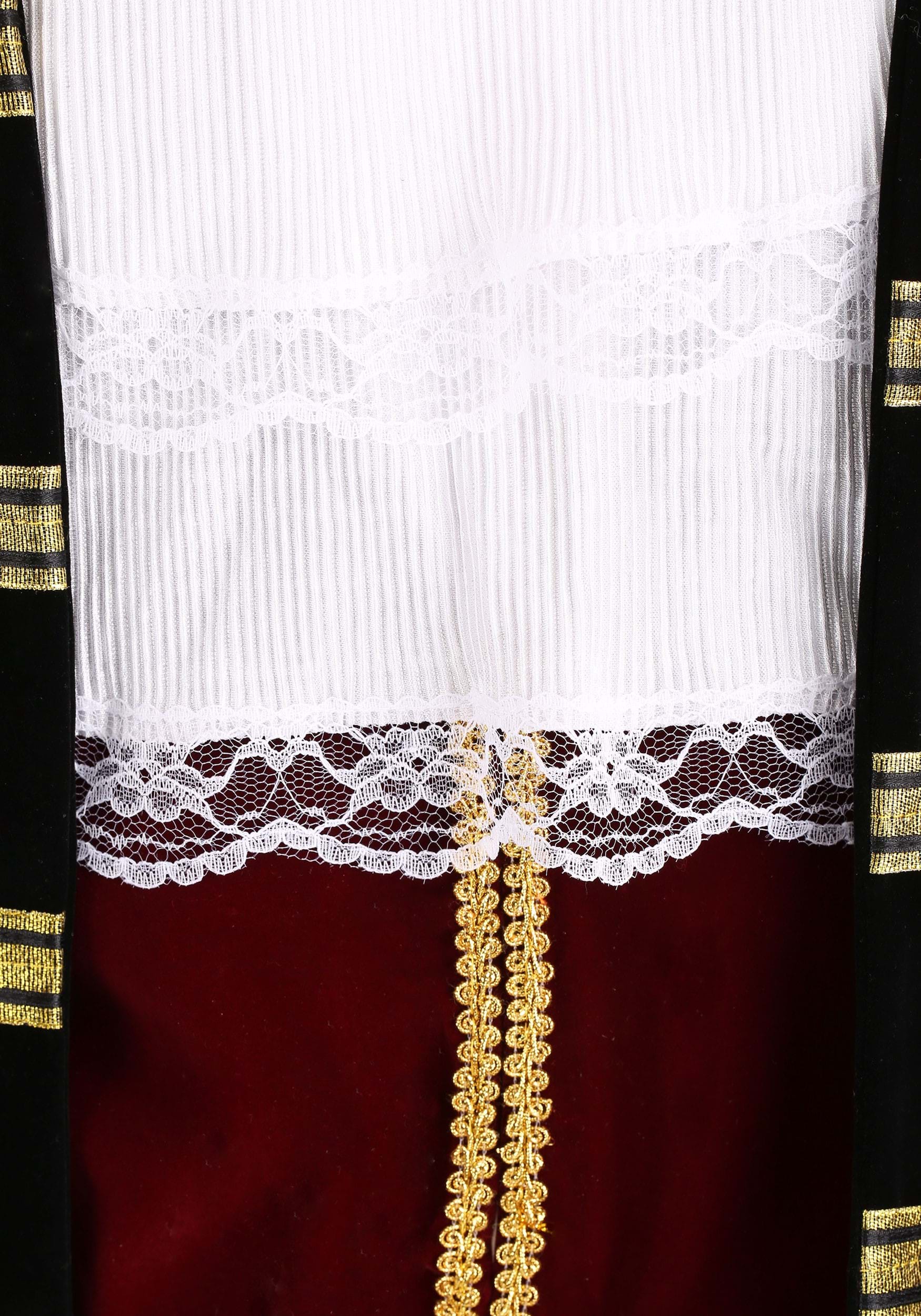• Maroon velvet vest has high neckline, metallic gold braid edging