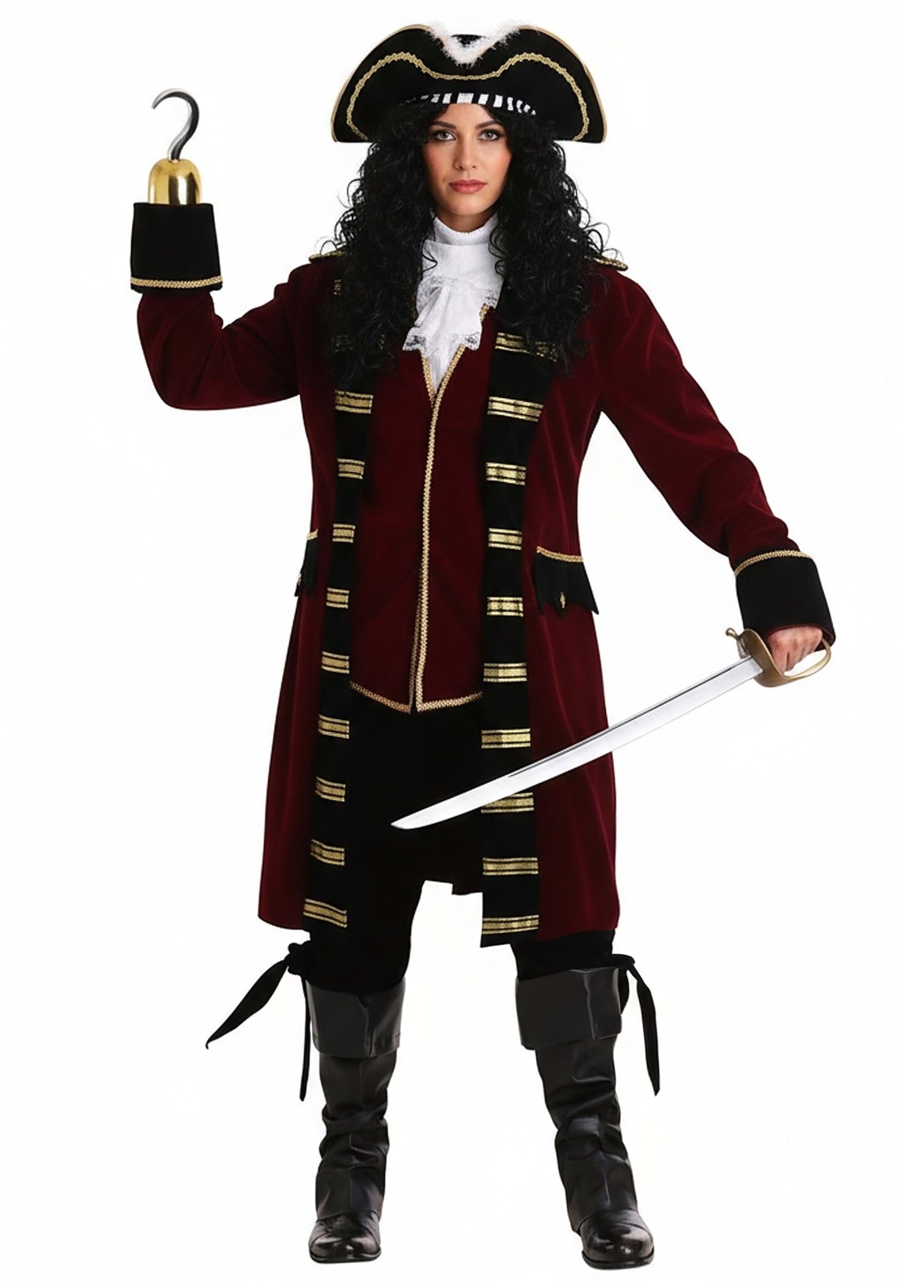And that is where you come in! There is one other bloke in Neverland that has a chance to get the serious intel and you can step right into those shoes with this Deluxe Captain Hook costume. Now, the Neverland pirate isn’t exactly the best buddy of The Pan, but, we’ve got wind that a certain pixie isn’t too fond of the flying guy’s main source of pixie dust. A few carefully placed words or a gesture with a hooked hand is sure to get the juicy details! And, with this red velvet jacket with black trim, faux leather boot covers, and a flawlessly wired tricorn captain hat, you’ll be full on Captain. In case you’re the type to go the full image, feel free to either toss your hand to a passing crocodile or just pick up the Hook Hand if you want to go less gory. Neverland, here we come!