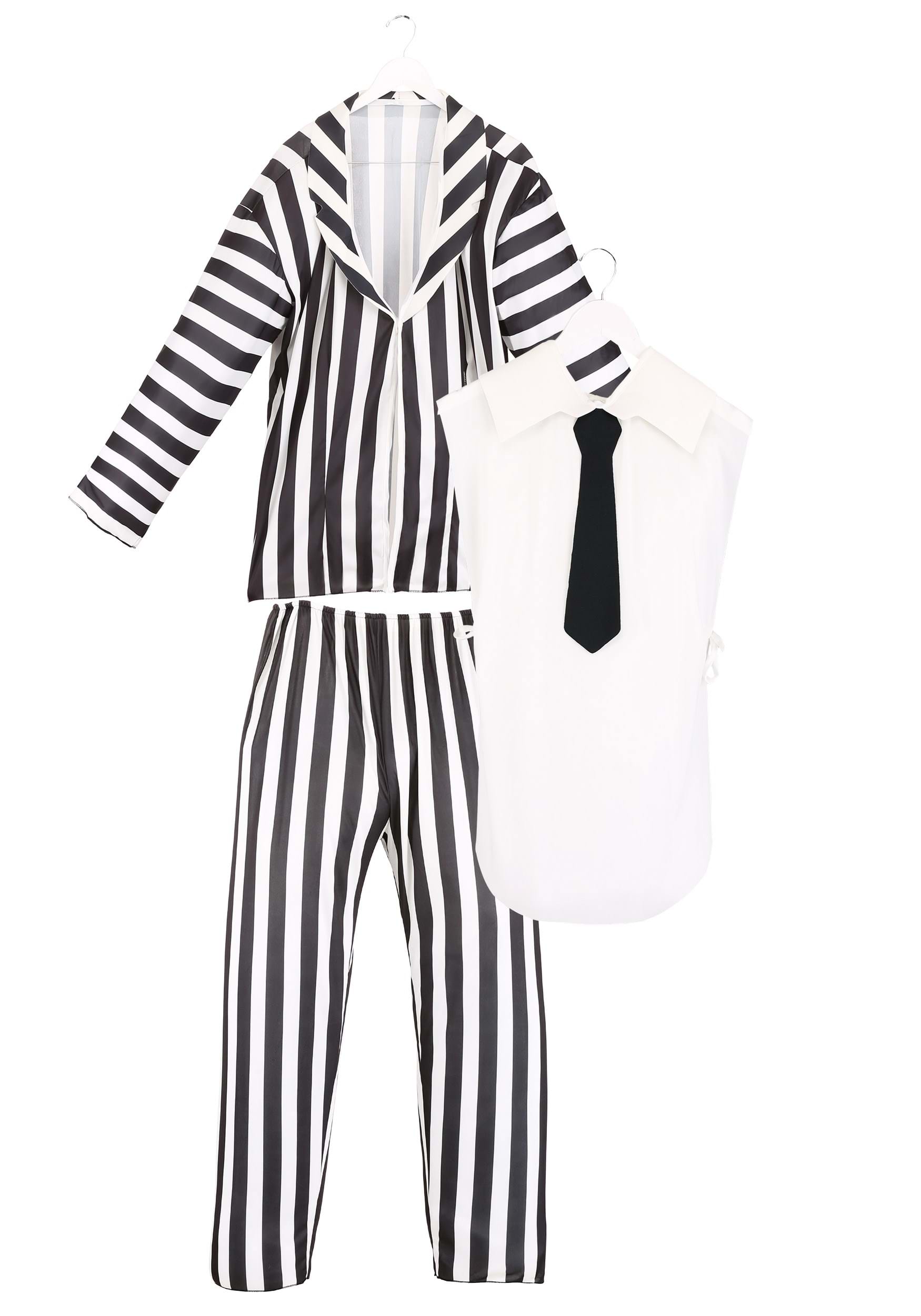 How do you pull off a black and white vertically striped suit? That would usually be a tough question to answer, but when you're decked out in this Plus Size Beetlejuice costume, you'll have plenty of stylishly spooky swagger to make it work!