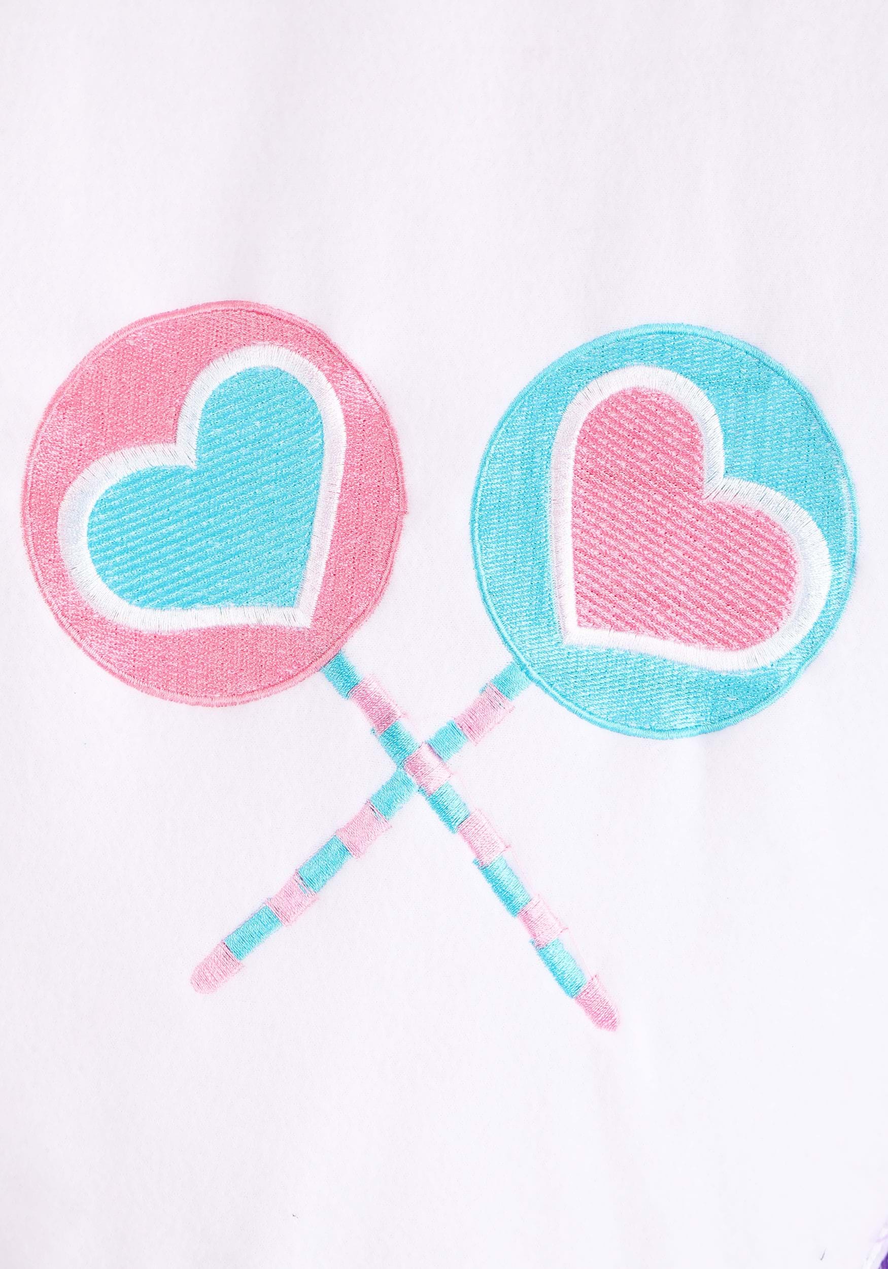 - Attached mitts flip back to free hands, appliqued hearts on palms