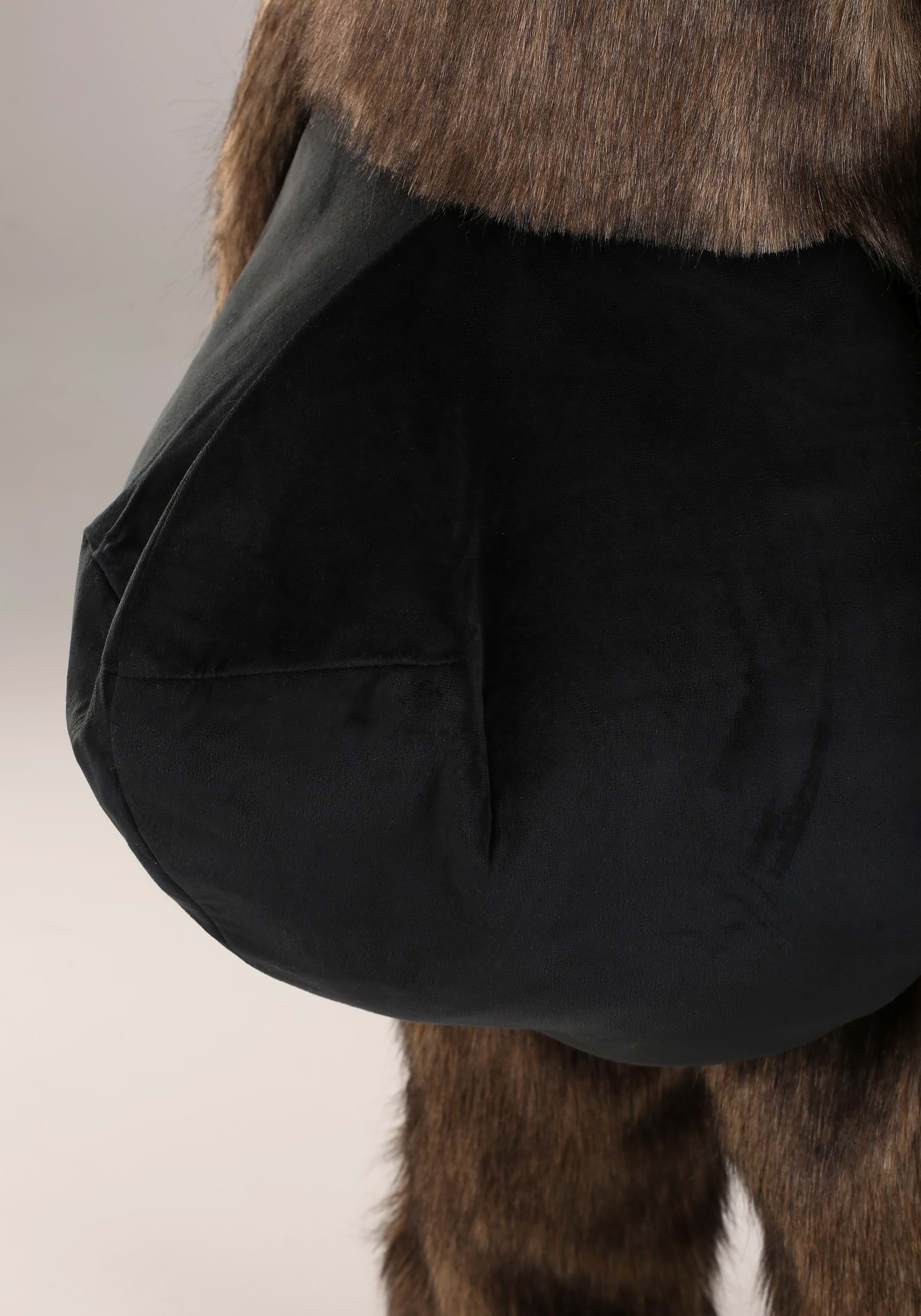 - Stuffed spider abdomen is sewn to back hemline of shirt