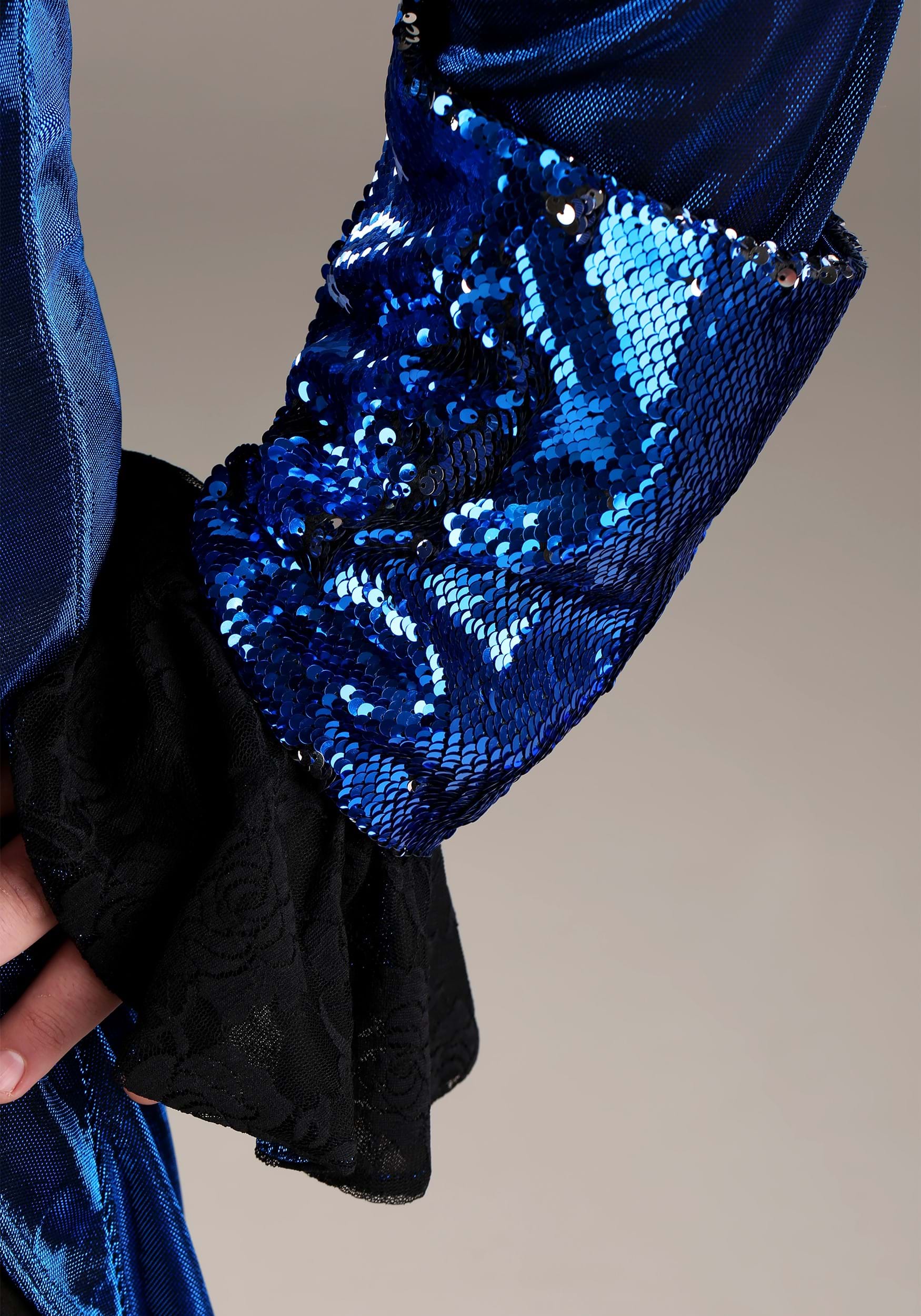 - Jacket has sequin covered collar, lapels and wide sleeve cuffs