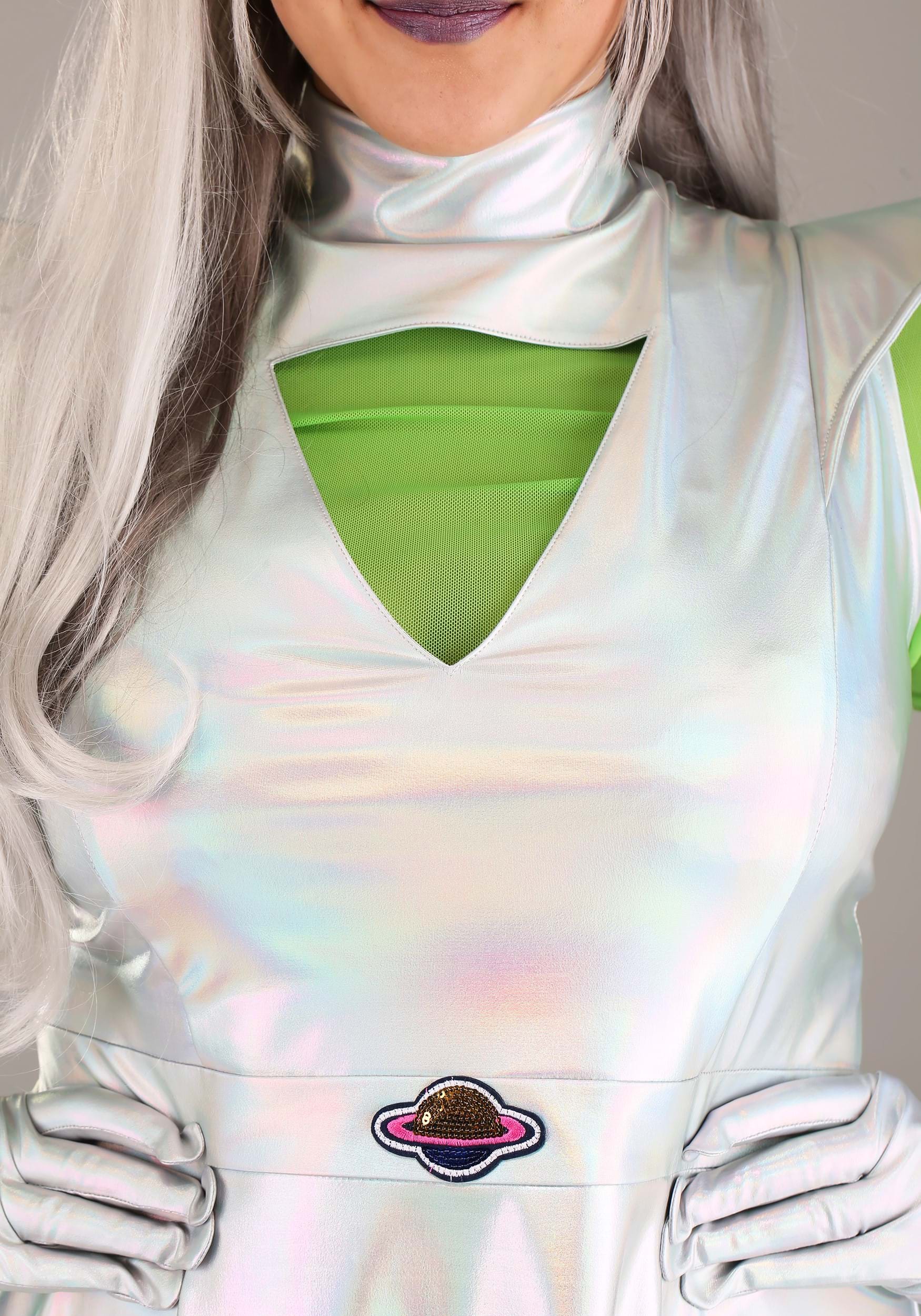 This is an exclusive Women's Plus Size Outer Space Alien Costume.
