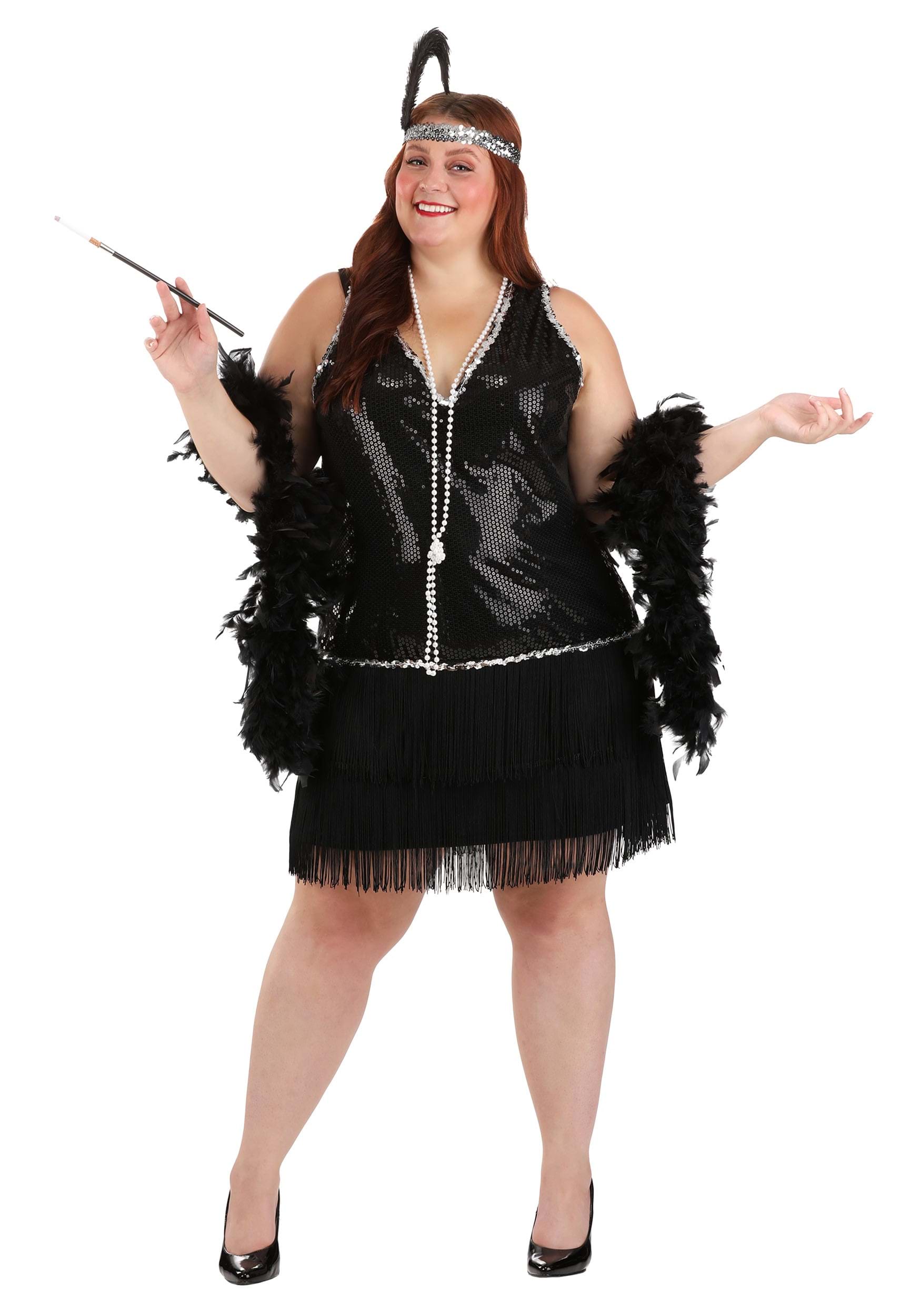 This is a Plus Size Women's Onyx Flapper Costume.
