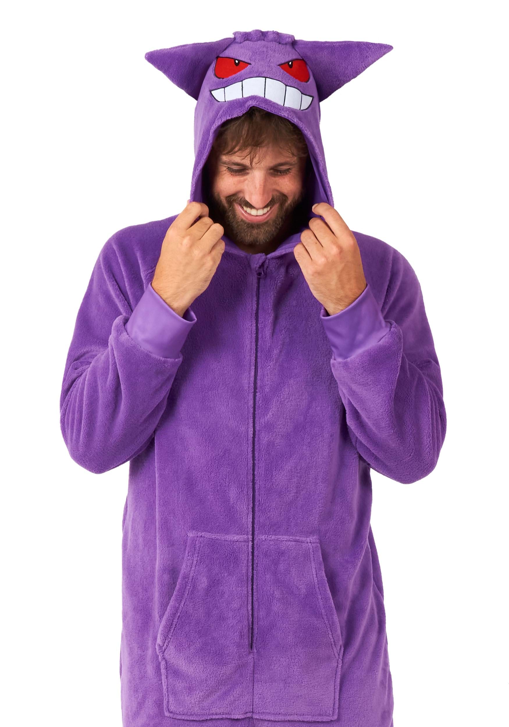 - Fleece jumpsuit has zipper down center front, pockets on the front