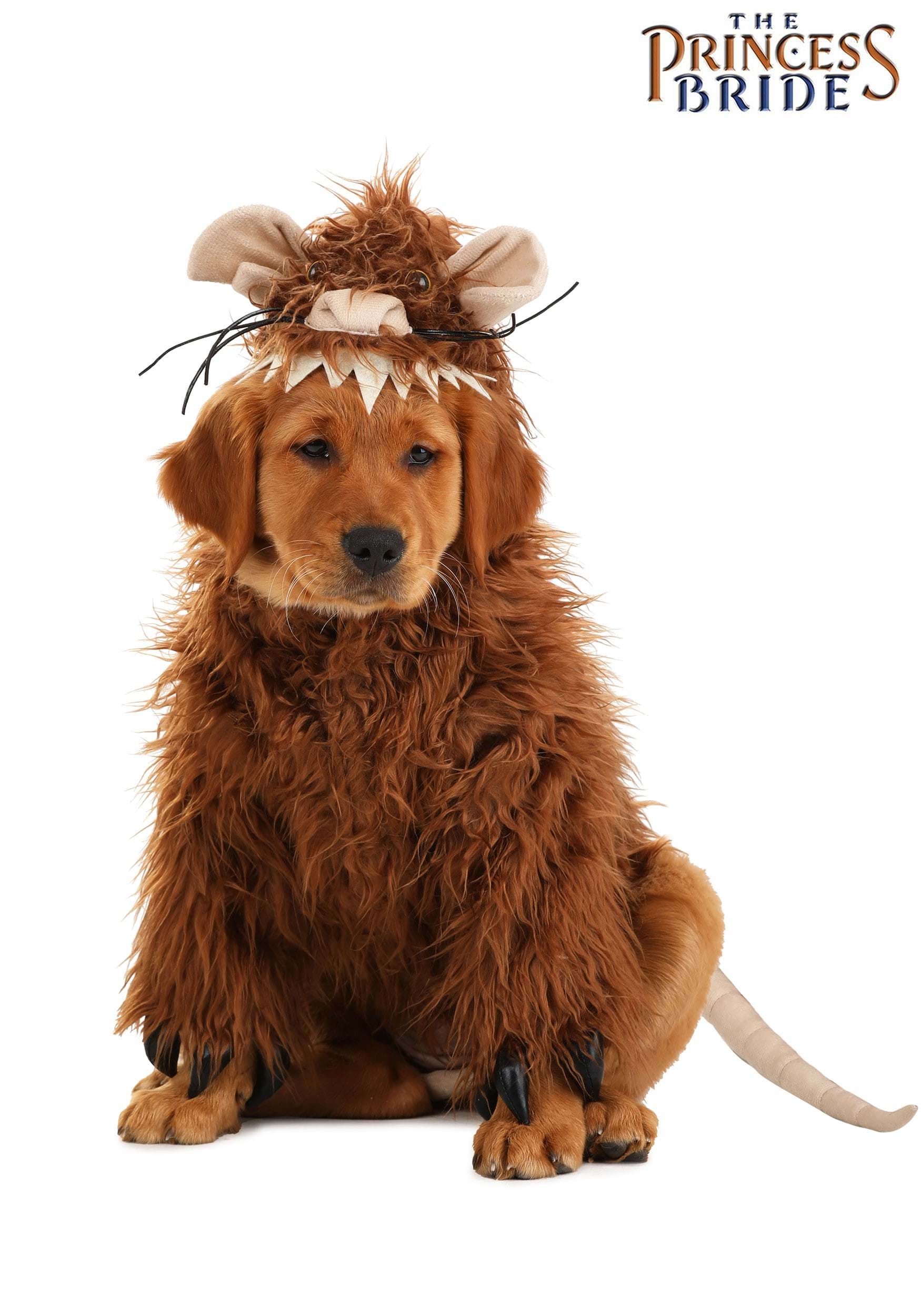 If Wesley and Buttercup had met a creature in the Fire Swamp that was as cute as your pet wearing this officially licensed Princess Bride R.O.U.S. Pet Costume, they would have walked out carrying six or so to keep as pets! The exclusive outfit is made of brown faux fur that covers your pet's front paws all the way to their lower back. A stuffed rat's tail dangles near where your pet's tail is naturally attached. Stuffed black claws are sewn to the legs, and the hood is decorated with R.O.U.S. features.